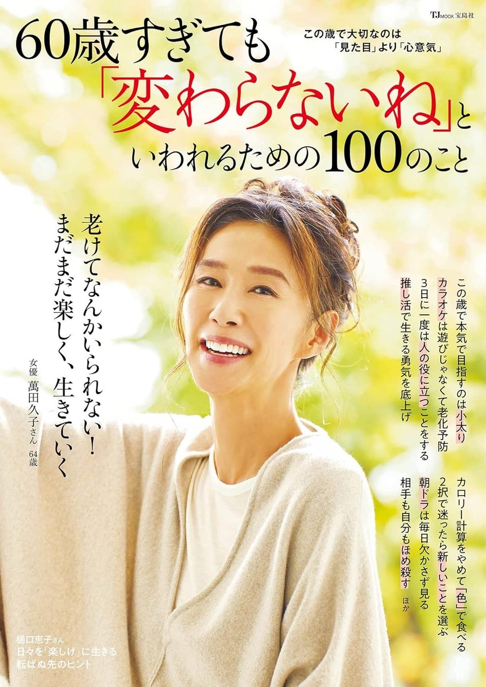 シリーズ7冊目の最新刊のテーマは「わがまま(=自分を貫く)」。表紙・巻頭インタビューには上沼恵美子さんが登場し、これまでの芸能生活やプライベートなど人生を振り返ります。そのほか作家の内館牧子さんは「わがままな終活」について、77歳の若手芸人“おばあちゃん”は人生を楽しむ法則を明かします。これからの人生を自分の心に素直に従って、わがままに悔いなく生きるためのヒントが詰まった一冊です。