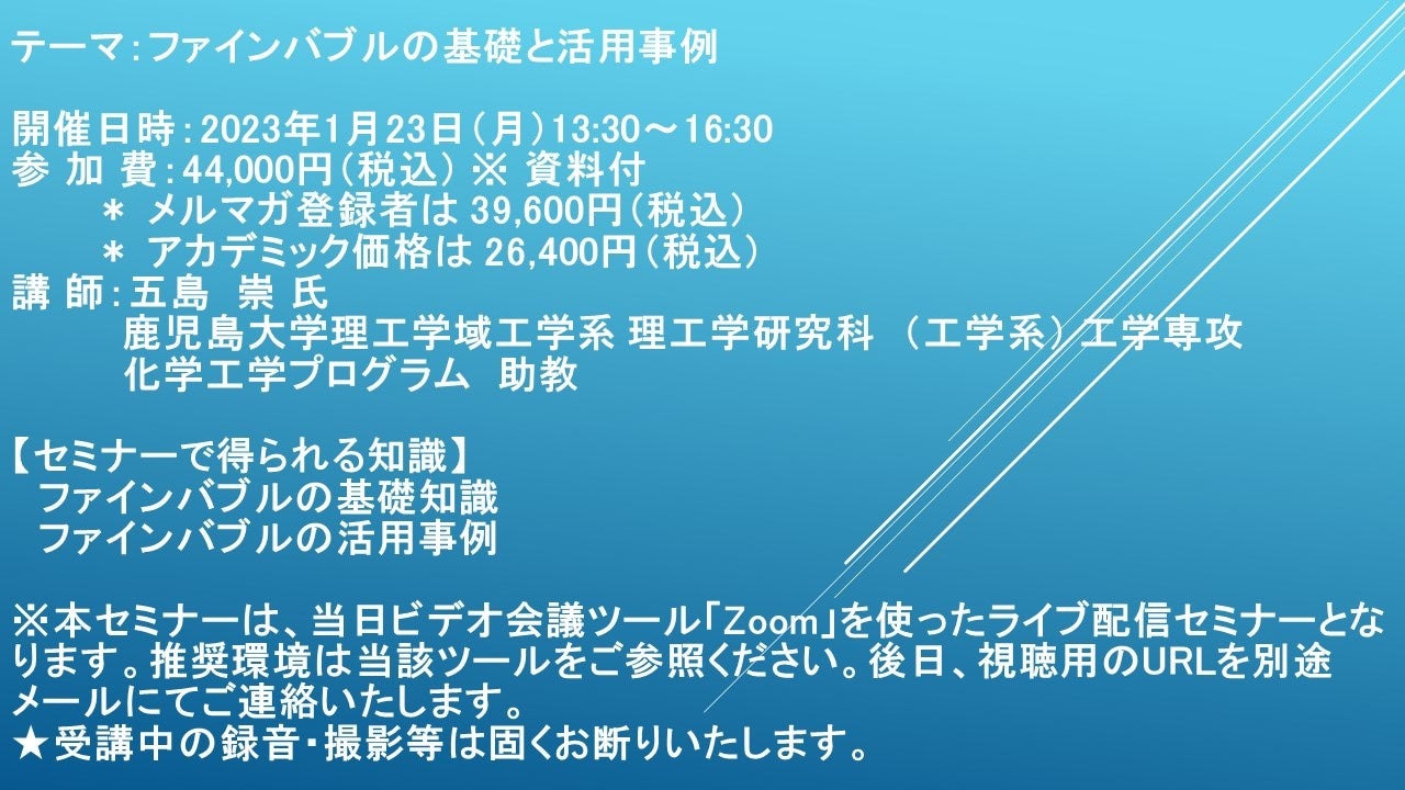 【ライブ配信セミナー】ファインバブルの基礎と活用事例 1月23日(月)開催 主催:(株)シーエムシー・リサーチ