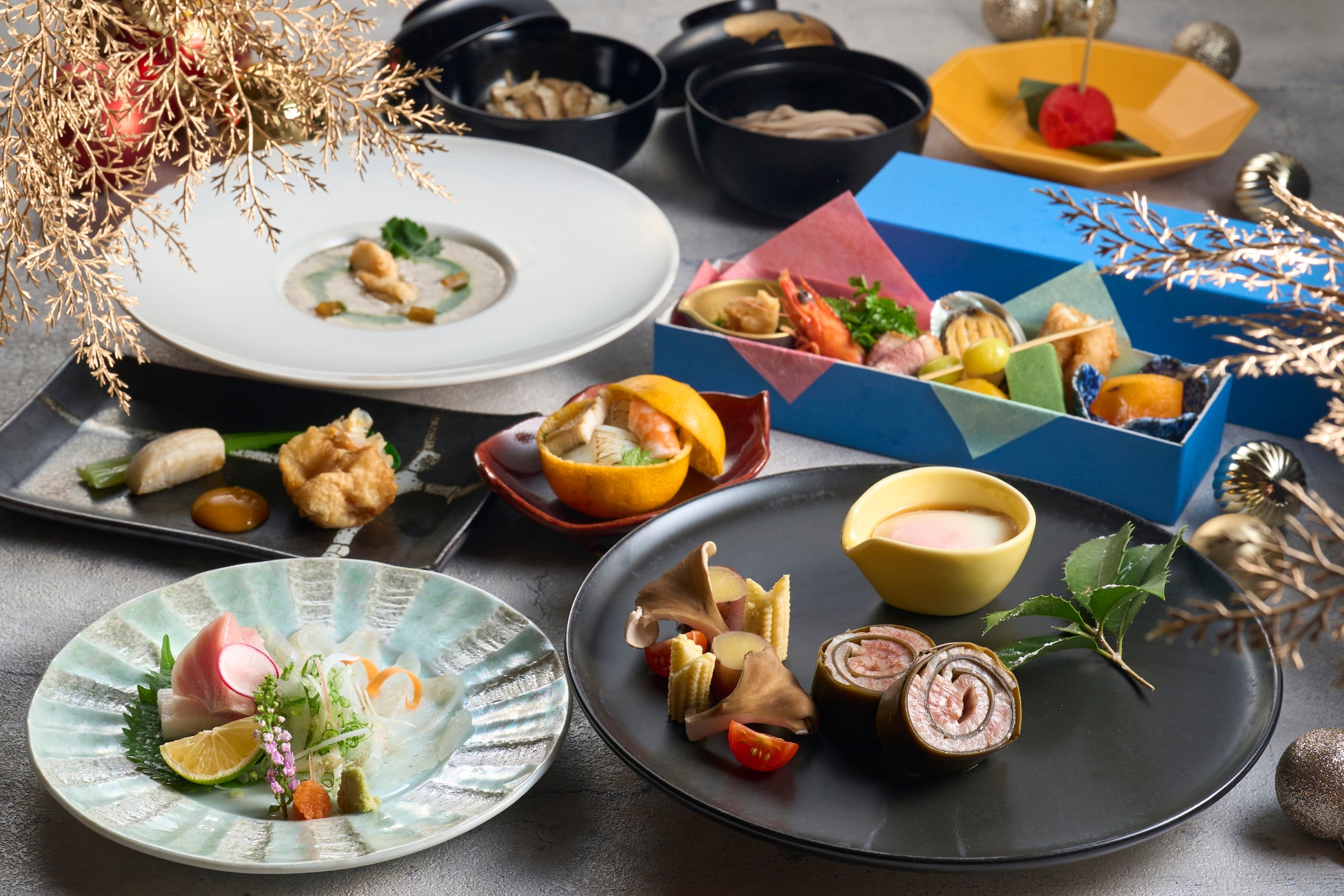その他にも、「中国料理 龍鳳」(2階)では、クリスマスにふさわしいアレンジをくわえたランチコースと、ディナーにはご家族皆さまで囲むひとときにぴったりの大皿料理を、フリードリンク付きにてご用意。「皿倉」(1階)にてご用意するクリスマス会席では、旬の味わいはそのままに、ふぐや博多和牛などの豪華食材に、プレゼントボックスに見立てた先附からブッシュドノエルに仕立てた焼物など、趣向を凝らしたオリジナリティ溢れるホリデーシーズン限定のお品書きを揃えます。