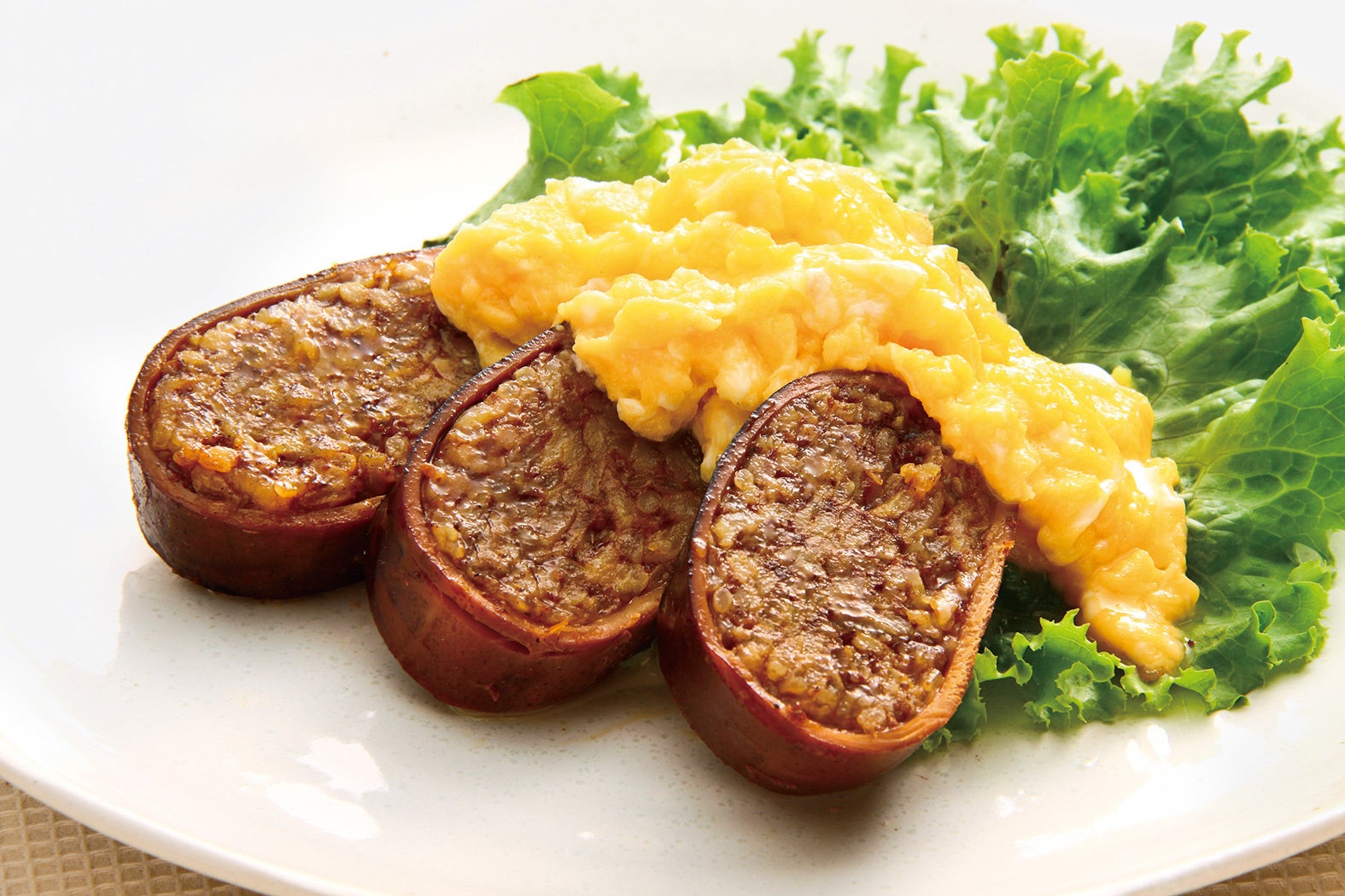 ◆石川産の「こしひかり」を使用し、自家製醤油タレで煮込んだ金沢カレー味のいかめし。海と野の素材と地元に昔から親しまれている味を融合。