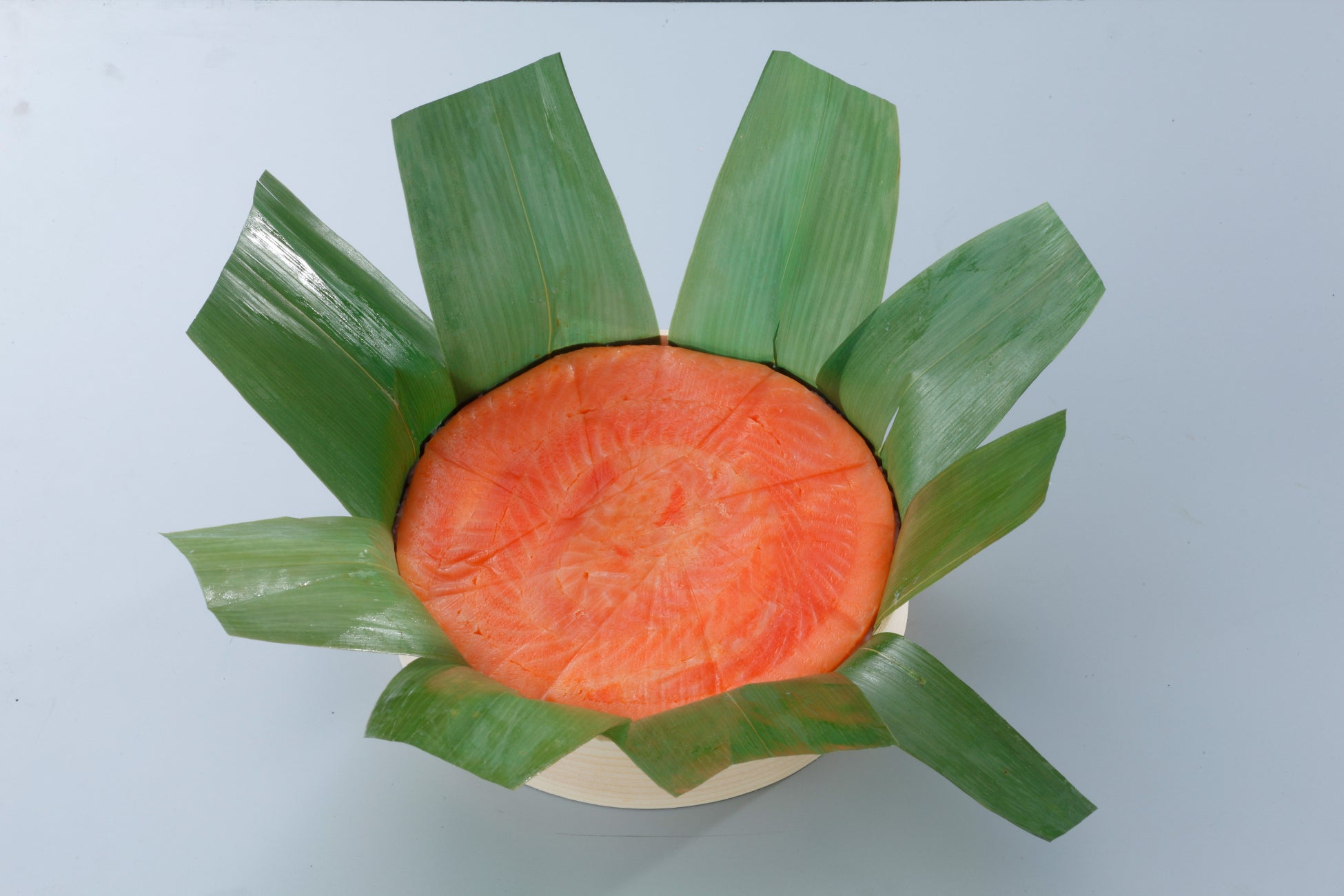 ほどよい脂ののった鱒にほんのりと甘いすし飯、緑が濃く香りの良い笹。1つ1つふんわり加減の手押しで仕上げました。