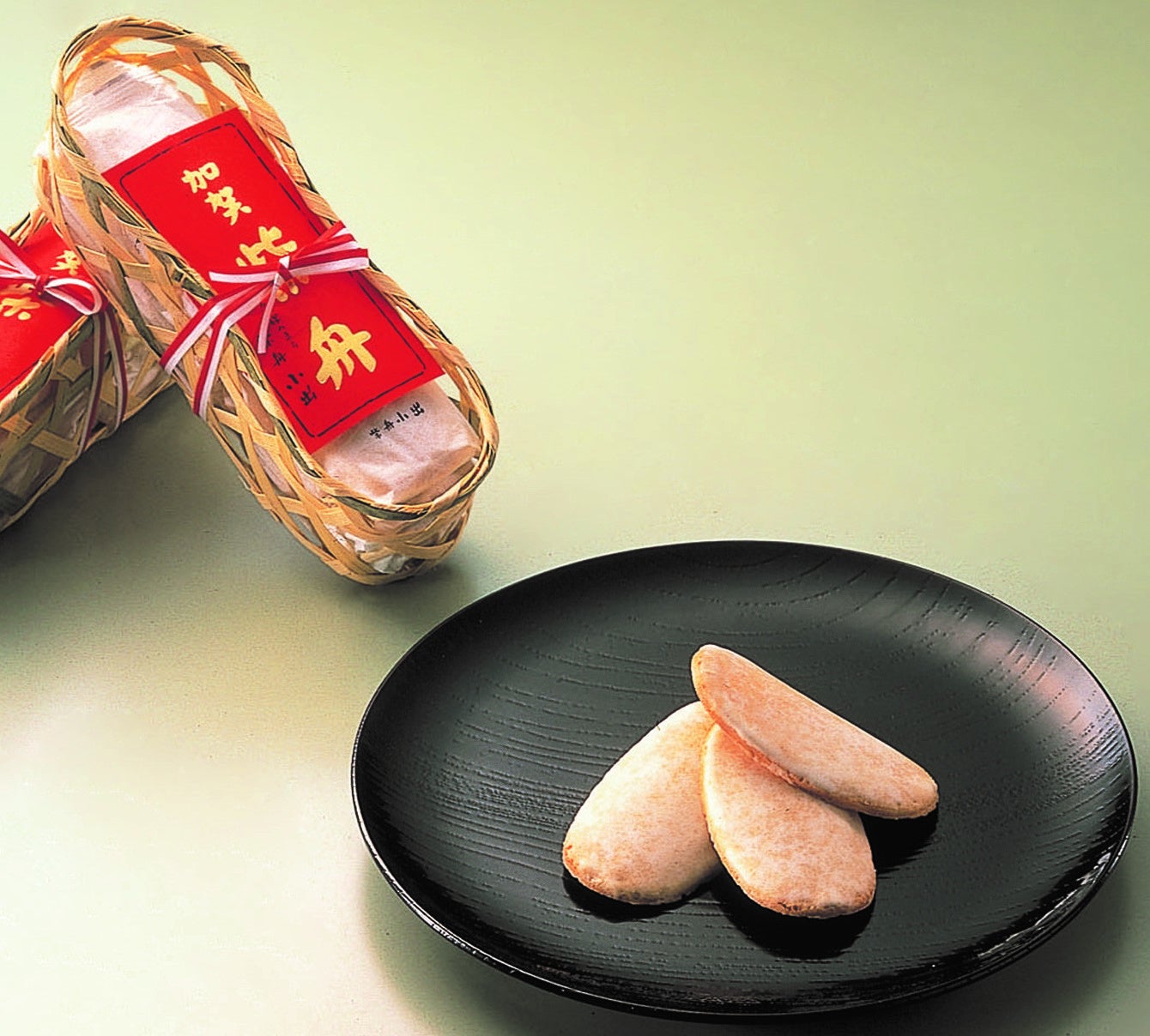 ◆ほどよい反りかげんの小判型に、うっすらと雪をはいたような白砂糖の化粧引き。 生姜の風味がピリッときいた金沢のお菓子です。