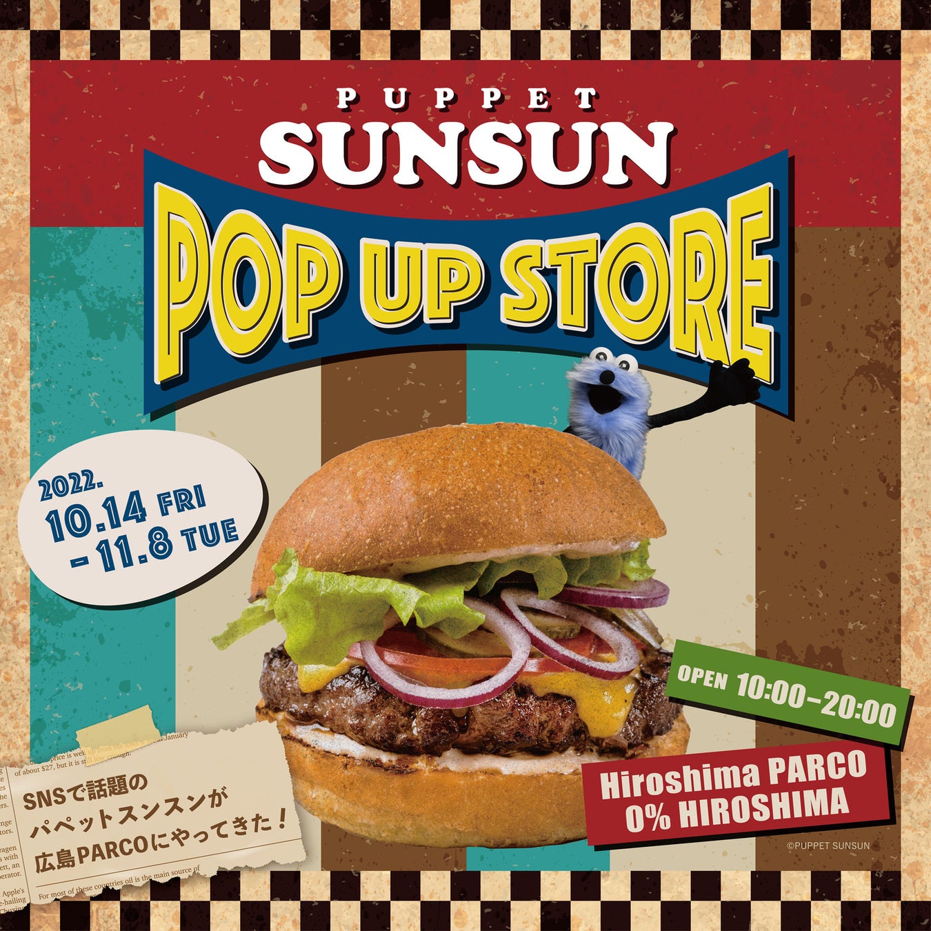 SNSで話題のキャラクター「パペットスンスン」のイベント『PUPPET SUNSUN POP UP STORE』広島PARCOにて10月14日(金)より開催!