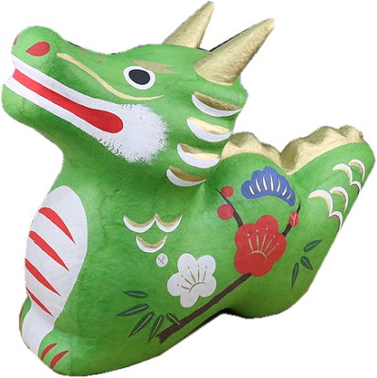 昨年は兎年らしい優しい雰囲気のものが多く見られましたが、今年は力強い龍をイメージしたカッコ良いデザインが豊富。ぱっと目を引く特大サイズの干支の置物や、木目込・金属・ガラスの素材等、豊富なアイテムを揃えています。