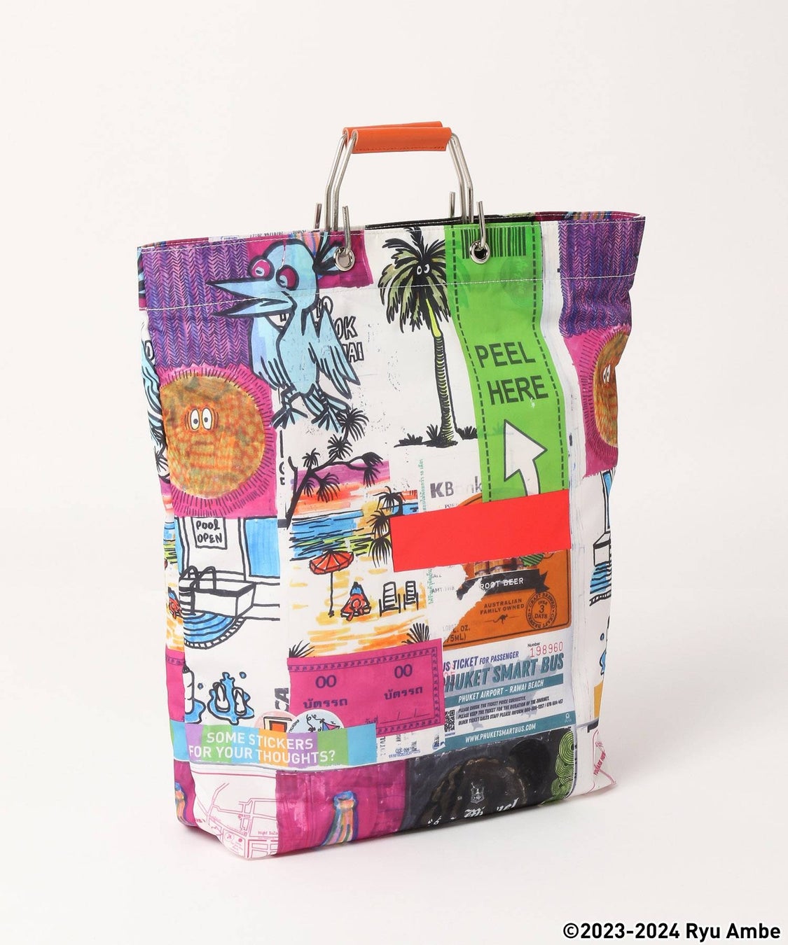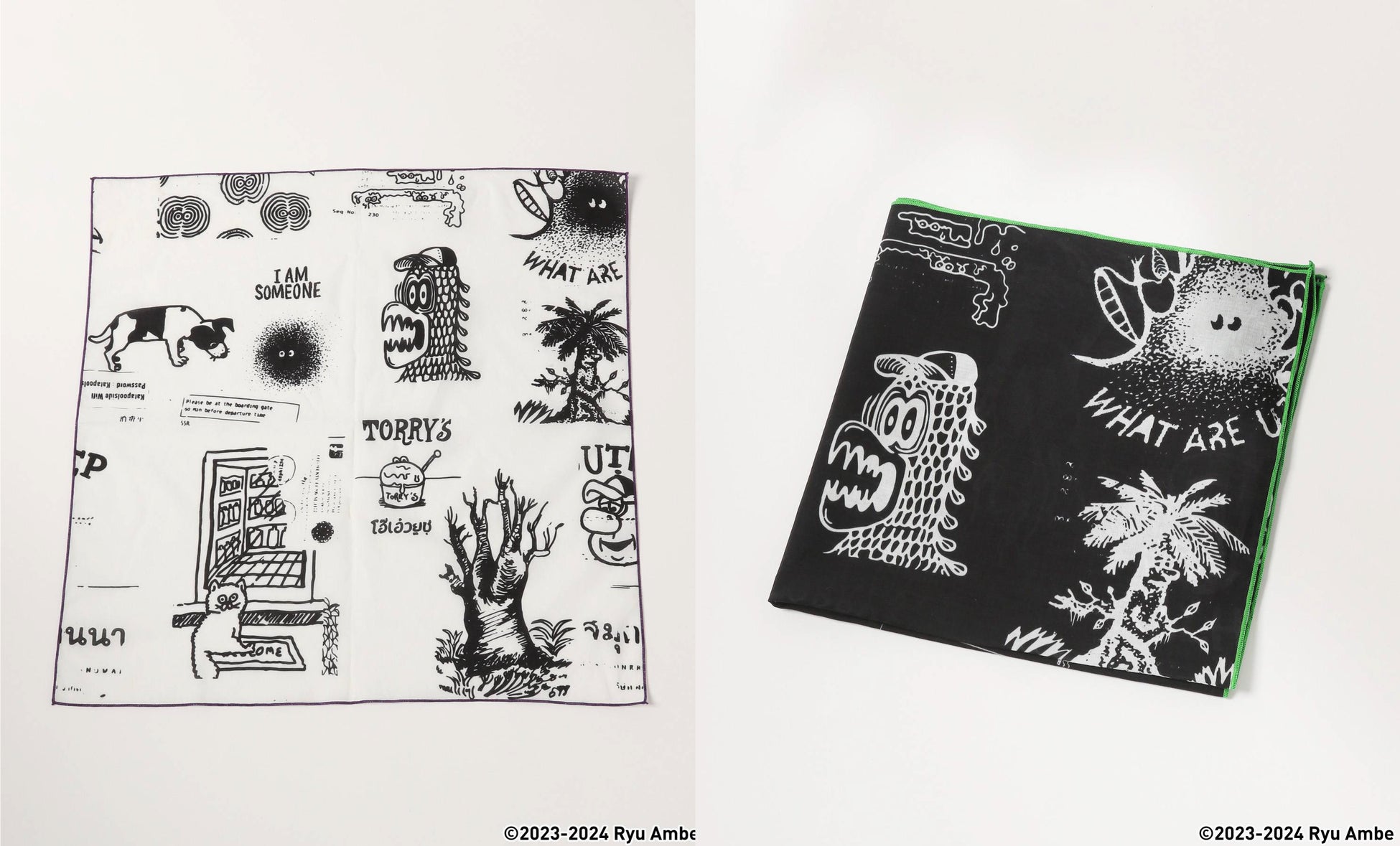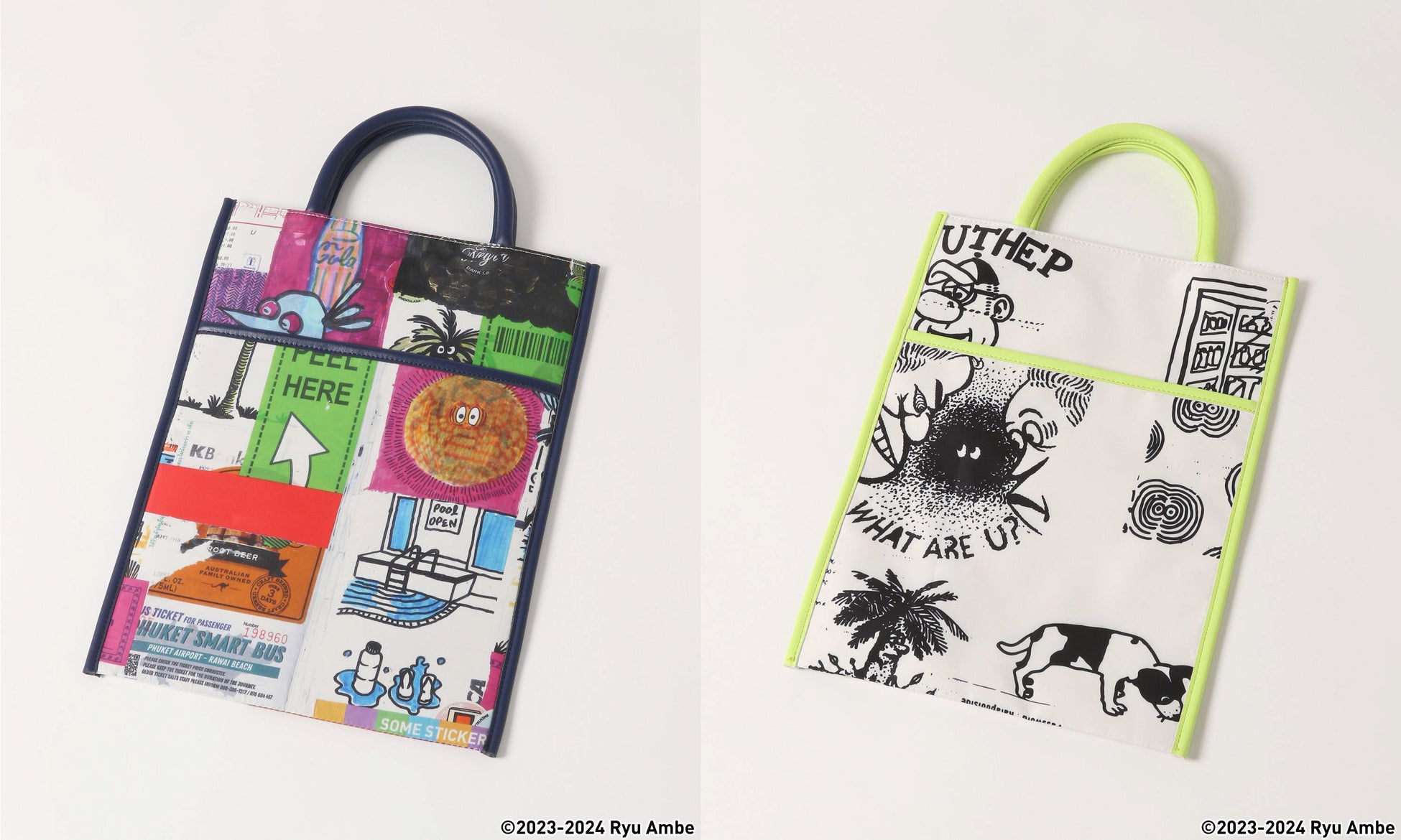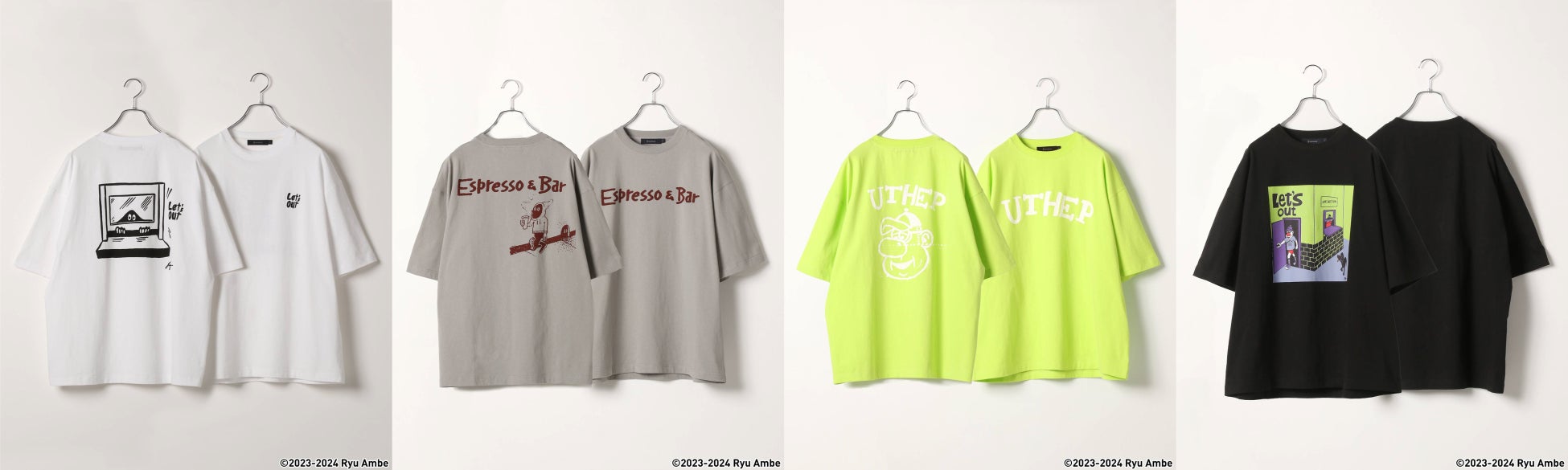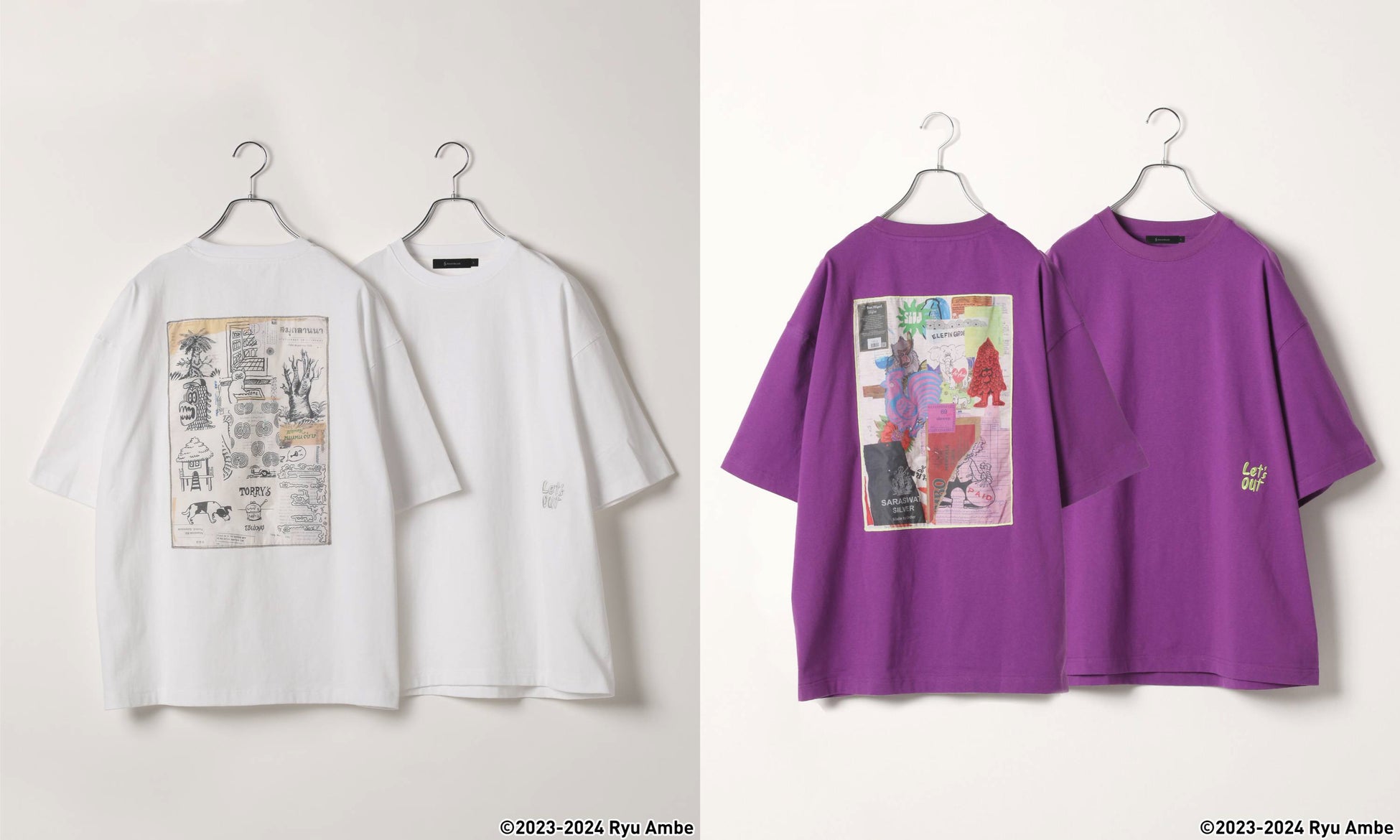 カラフルなコラージュやキャラクターデザインをモチーフにしたプリントTシャツを中心に、”Let’s Out“なシーンで活躍するバッグやキャップ、ハンドタオル(バンダナ)、ガジェットポーチなどを展開し、合計アパレル4型、雑貨12型をラインアップします。Ryu Ambe氏お馴染みのキャラクターをプリントした限定カラーTシャツは、ステラプレイス店、ルミネエスト店、京都寺町店、梅田ヘップファイブ店、渋谷店、弊社公式WEBストア .st、ZOZOTOWNのみで展開します。