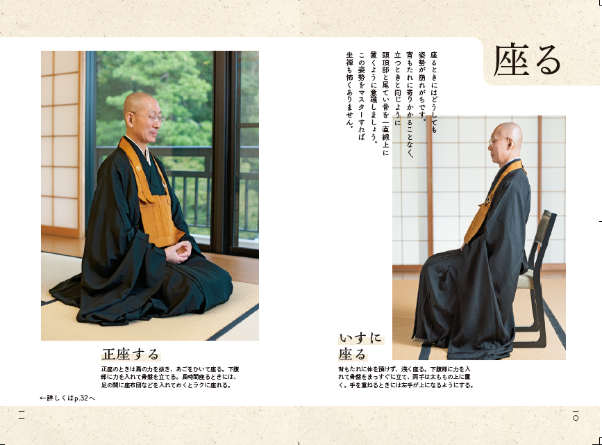 体と形 今と向き合う 息を吐く 姿勢を正す 手を合わせる 手の形 坐禅を知る いす坐禅 坐禅を組む