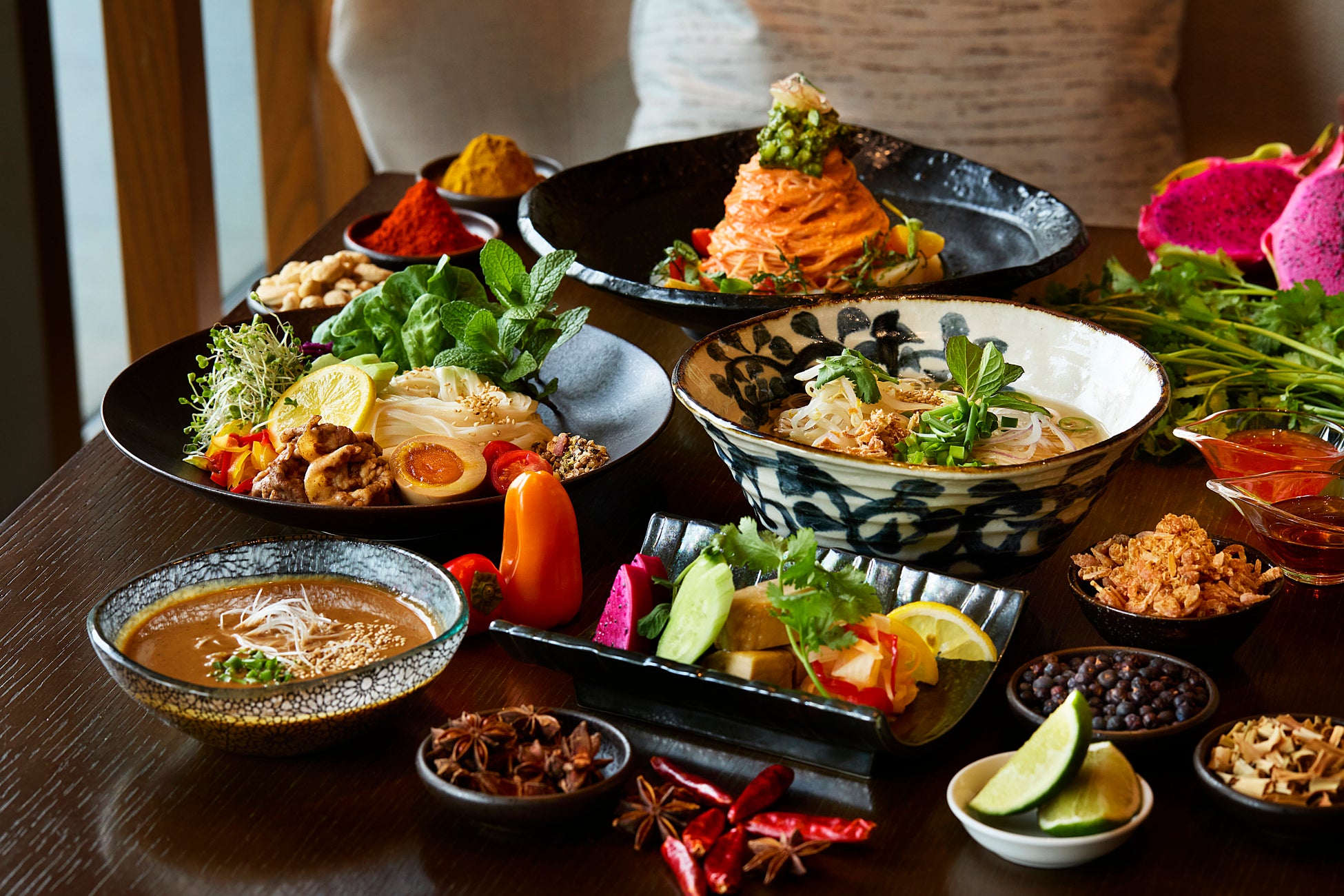 アラカルトメニューは、おなじみのトムヤムクン風スープやシンガポール風チキンライス、有頭海老とココナッツのカレーほか、暑い夏にぴったりの3種の冷たい麺をご用意いたしました。