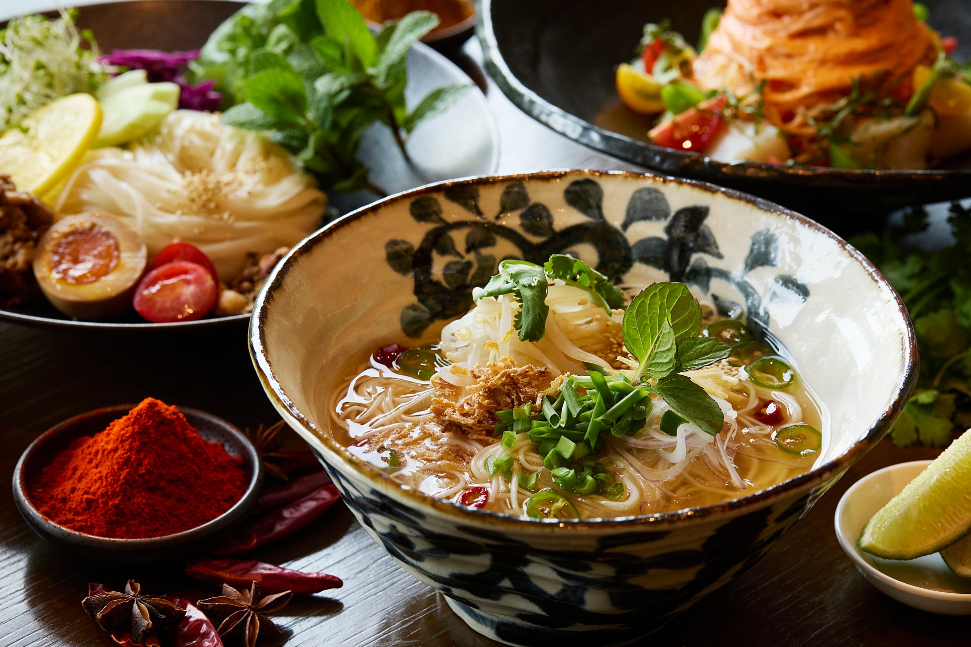 ナンプラー香る和出汁に唐辛子や香味野菜が効いた一品。奈良の名産「三輪そうめん」が、アジアンスープで新たな魅力を放ちます。