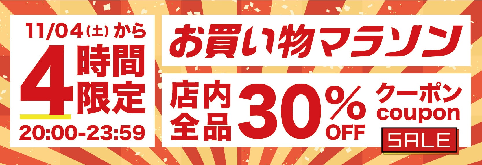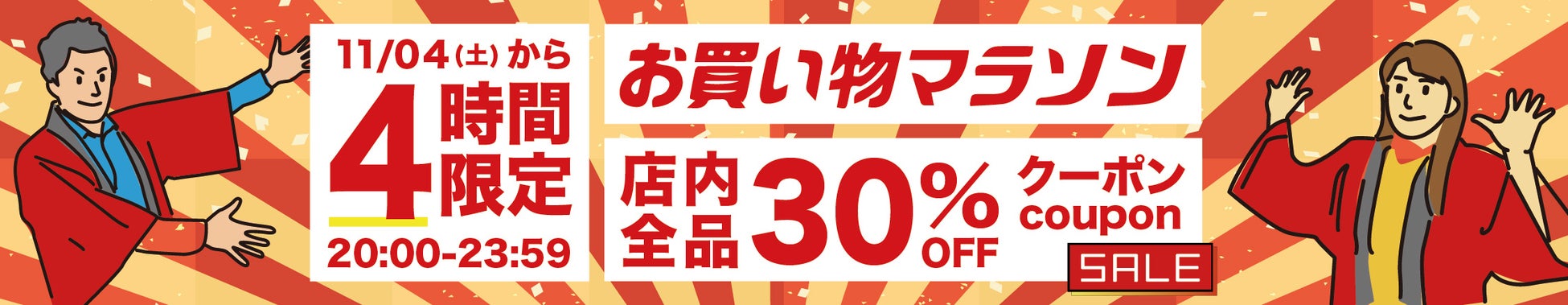 キャンペーン期間 | 【開始4時間限定全品30%OFFクーポン】 11/4 20:00〜11/4 23:59 【最大2000円OFFクーポン】11/4 20:00〜11/11 01:59 |