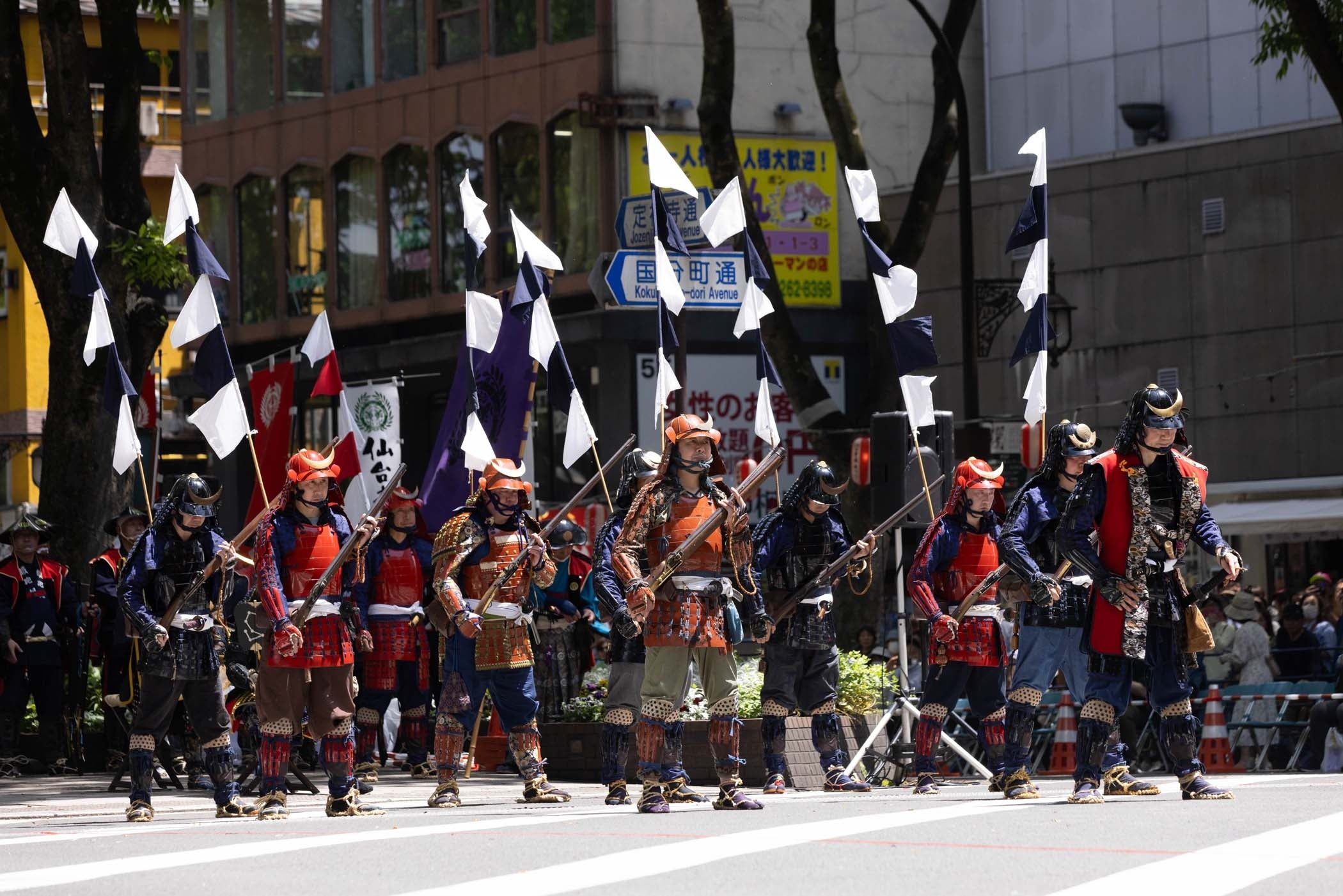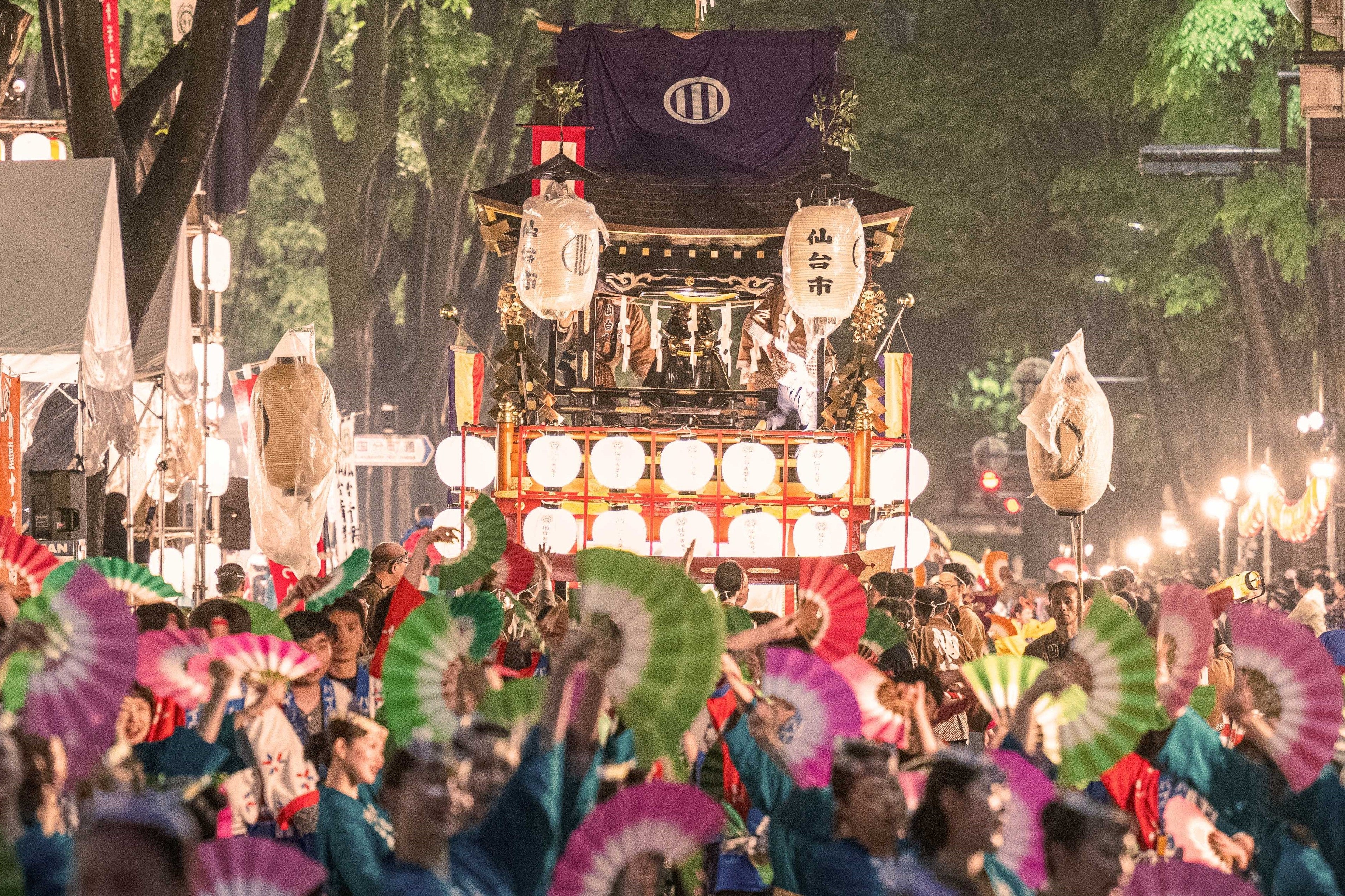 仙台・青葉まつりとは? 杜の都・仙台に初夏を告げる、2日間で約95万人が酔いしれる仙台市内最大級の祭典です。2日間のうち1日目の「宵まつり」は提灯が灯り、仙台すずめ踊りが披露される幻想的な演舞、2日目の「本まつり」は武者行列や豪華な山鉾(やまぼこ)が練り歩く時代絵巻巡行が見どころです。