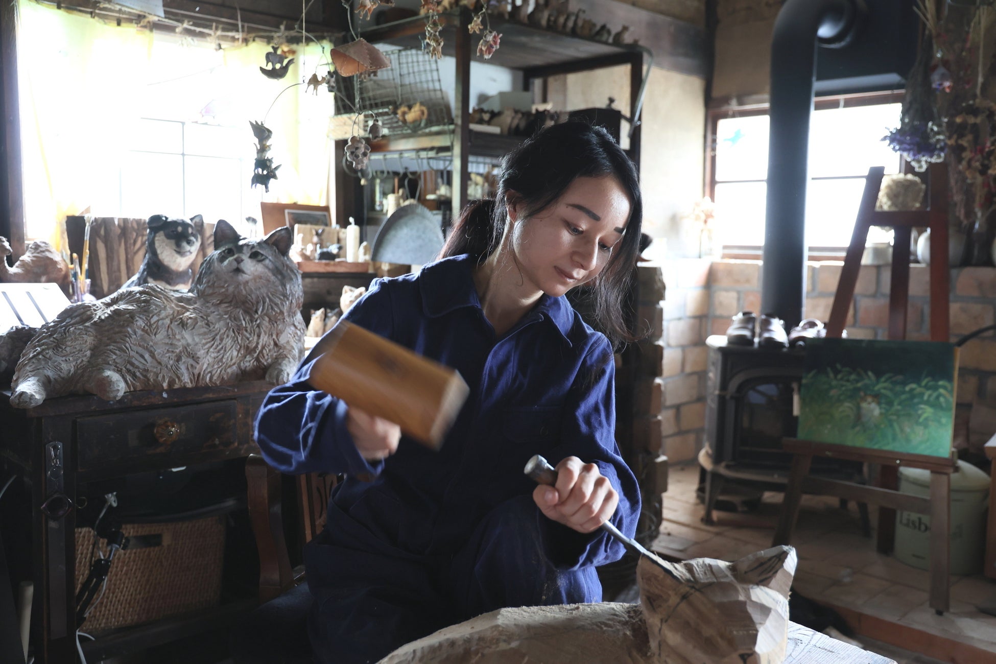 三重県の古い倉庫にアトリエを構え、動物たちのそのままの姿を木彫りにする彫刻家。材料はクスノキ。この世界に生きている、または生きていた動物たちをモデルにし、その子にもう一度出逢えるような彫刻を目指している。全国各地の美術館で個展を開催中。