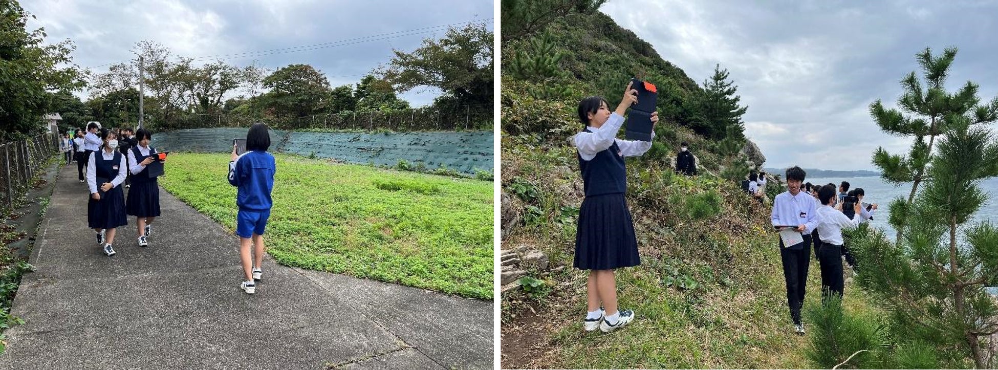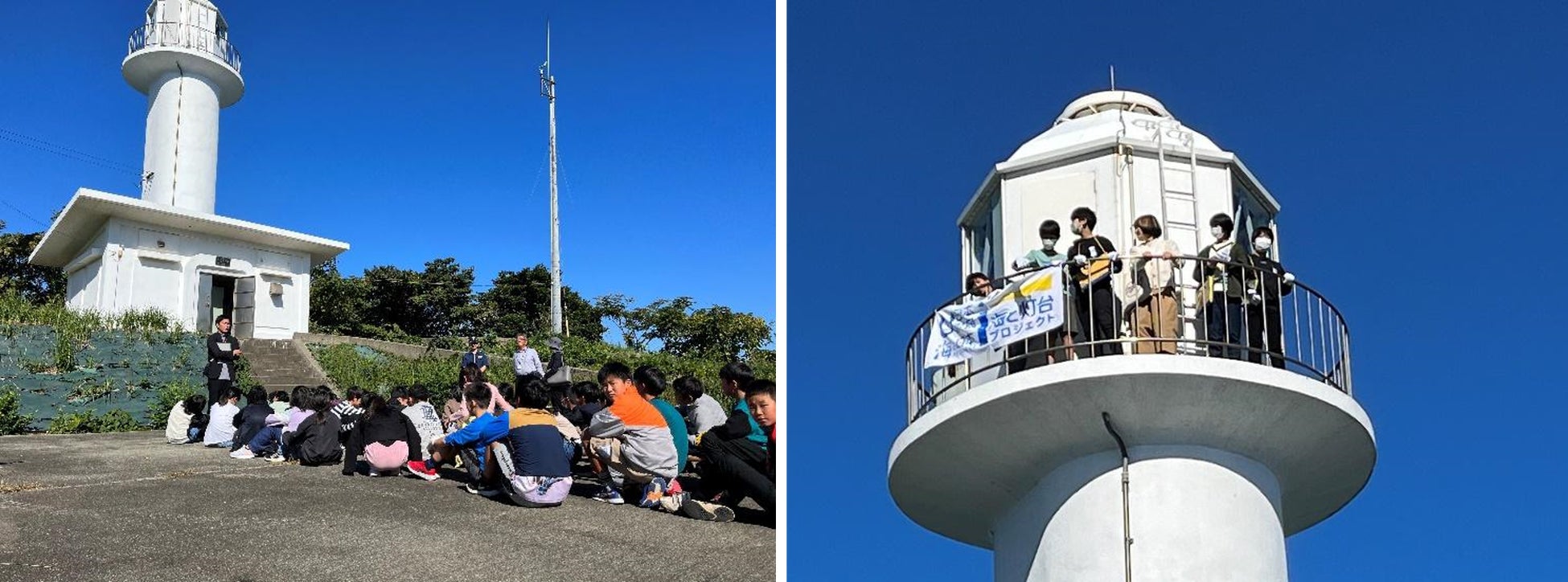 鳥取市青谷中学校の3年生17名が、探究あおやの授業を通じて、長尾鼻灯台へ初訪問!今回の授業では、地域の魅力を伝えるPR動画の制作に挑戦。昨年度までは、馴染みのあるお店や地元企業などへの訪問が中心となったが、今回は初めて長尾鼻灯台に訪問。地域の中でも認識が薄れつつあった「長尾鼻灯台」は昨年度の「海と灯台プロジェクト」で作成された「青谷灯台物語」を契機に徐々に地域での認知を回復しつつあります。今回、参加した生徒はみんな初めての訪問で、生徒からは「灯台から見える海の景色が素晴らしかった」「長尾鼻灯台も青谷の地域の魅力の一つだと思った」「海との関わりがふえて、海に対して興味がわいた。」「将来、青谷がなくならないように守らなければならない景色だと思った。」などの感想が聞かれ、より長尾鼻灯台の地域での存在価値が高まることが期待されます。今後この授業では、PR動画の制作が行われ、長尾鼻灯台を含めた地域の魅力PR動画を生徒自身が作り上げます。こうした灯台と触れる機会を経験する中で、地域を知り郷土愛を育てる「探究あおや」と連携し、学習プログラム創出を目指します。