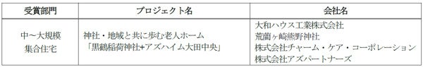 そのなかでも、神社・地域と共に歩む老人ホーム「黒鶴稲荷神社+アズハイム大田中央」は、「グッドデザイン・ベスト100」に選出されました。