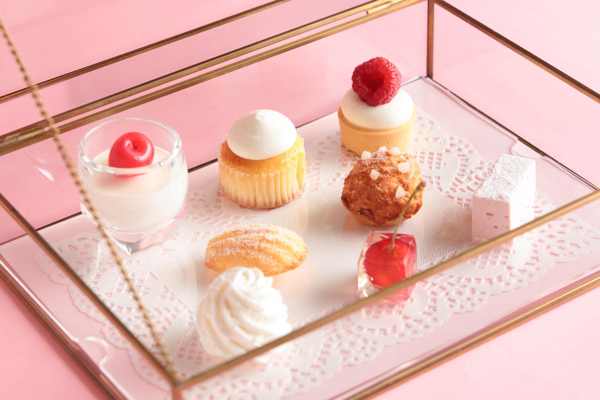 ボックスには、「ラズベリータルト」や「レモンカップケーキ」、ピンクカラーが愛らしい「ストロベリーギモーブ」など、見た目にも心ときめく可愛らしいスイーツがラインナップ。