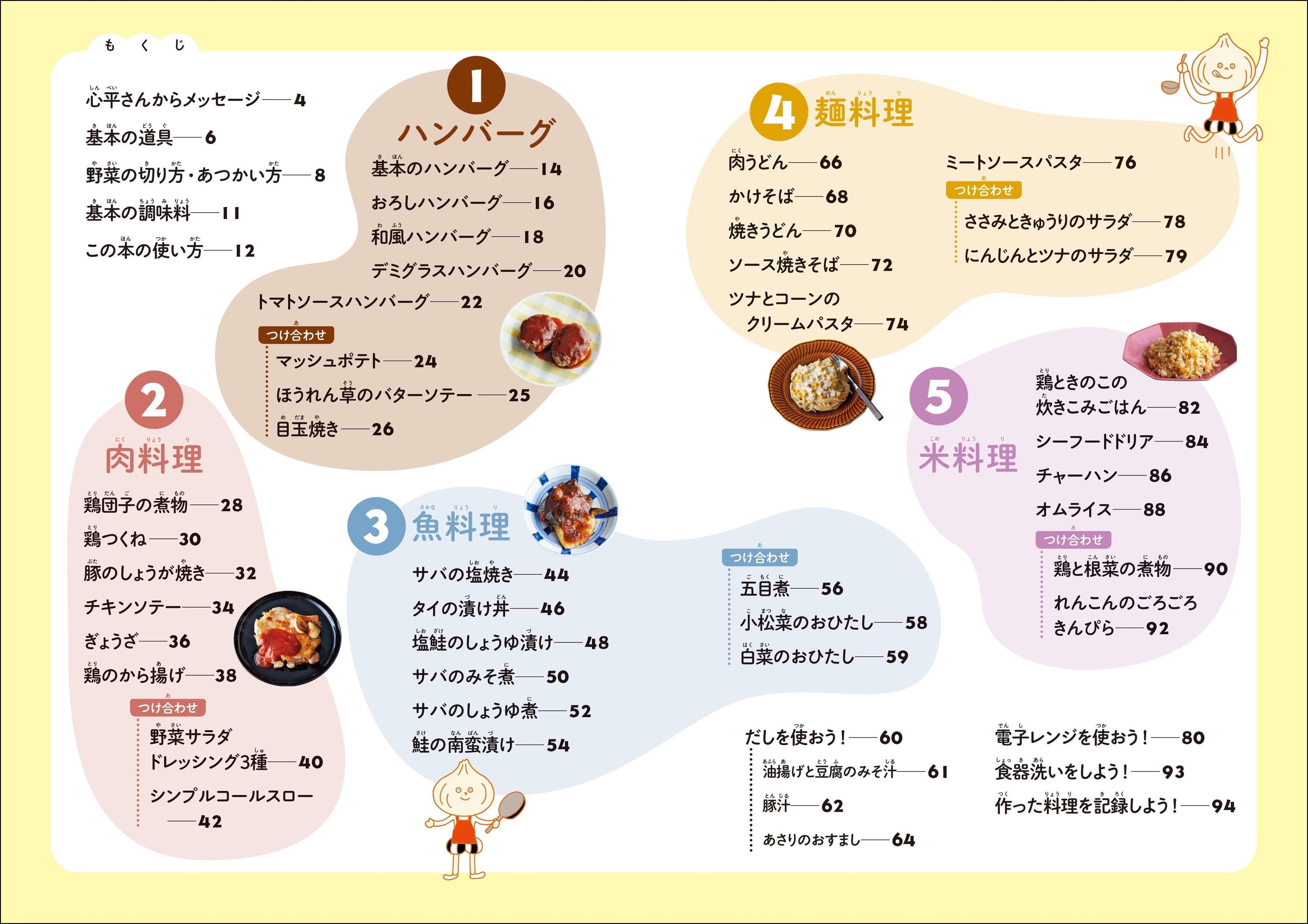 本書は、栗原家の味を紹介するレシピ本『栗原家のごはん』(大和書房)が好評の栗原心平さんによる、小学生でも作りやすい家庭料理のレシピ本です。お手伝いや特別な日の料理ではなく、日々の食卓にお子さんが作った一品が加わり、お子さんが継続して作りたくなるようなレシピを厳選しました。
