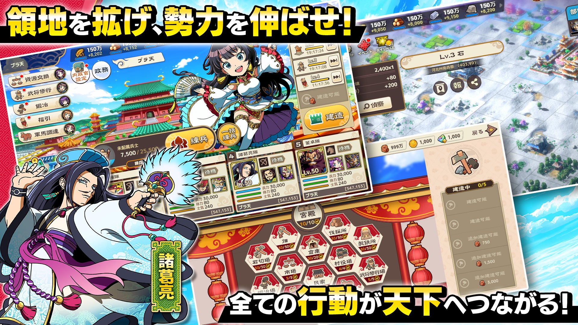 乱世を生きる君主として、領地を拡大し戦力を蓄えましょう。仲間とともに同盟を結成し、他の同盟と時に協力、時に争いながら、各地に点在する城を制圧。同盟の勢力を伸ばして、天下統一を目指しましょう!
