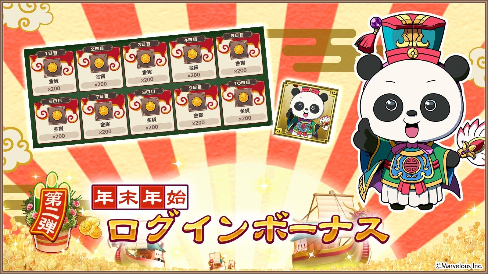 開催期間中に10日間ログインして、★5[強化用]パンダ、金貨を獲得しよう!