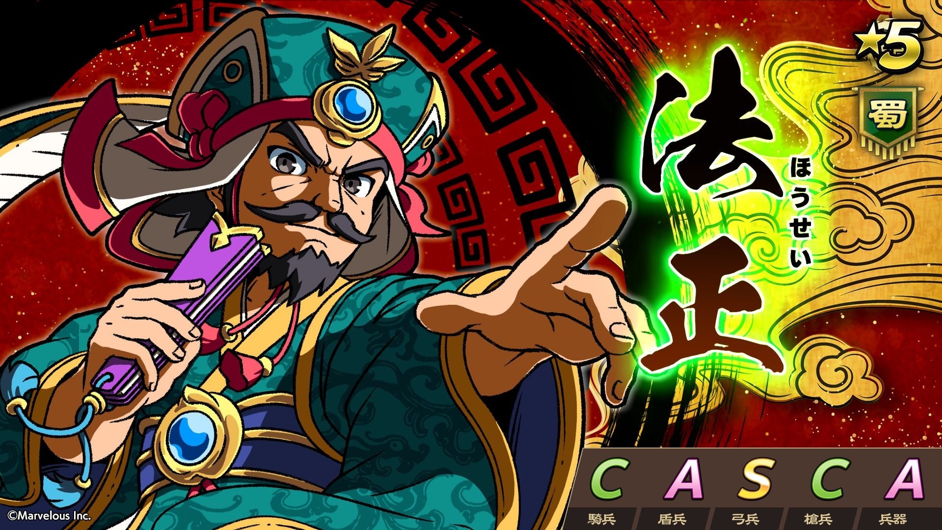 《法正》は固有スキルで麻痺状態の武将に計略低下&全体ダメージを与える計略タイプ!