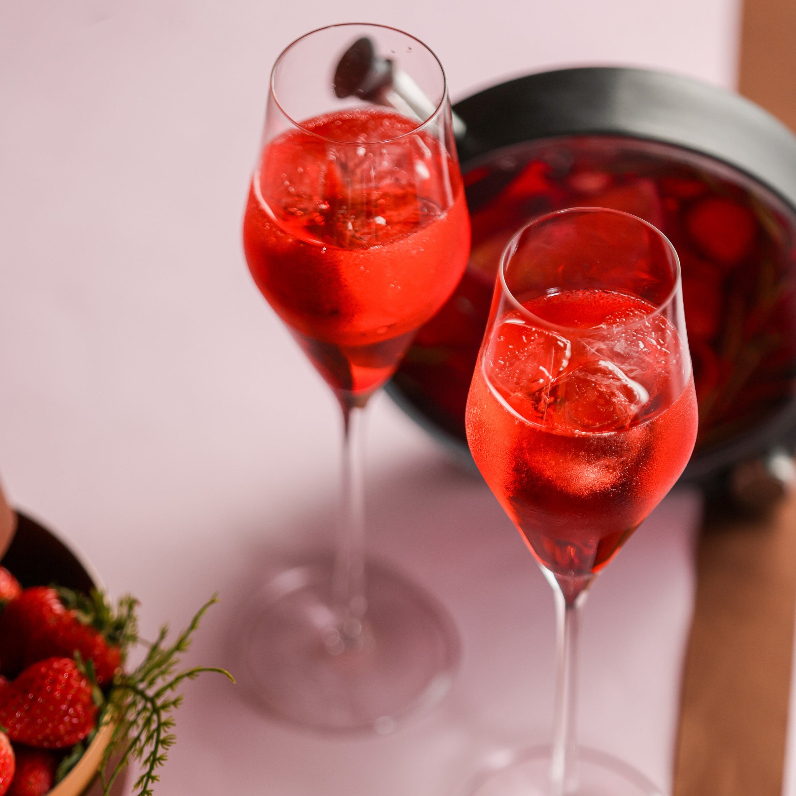 メインスタンドには、ローズマリー香る苺大福などのスイーツ6種と、苺に見立てたパプリカムースなどのセイボリー3種。ストロベリーを使ったビネガーのウェルカムドリンクで乾杯したあとは、「ストロベリー&ミントティー」や「いちごオレ」など春の香りを感じる全21種類のドリンクをフリーフローで楽しめるのも魅力的。