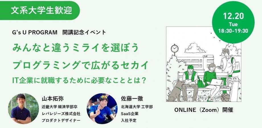 IT関連及びデジタルコンテンツの人材養成スクール・大学・大学院を運営するデジタルハリウッド株式会社(本社:東京都千代田区、代表取締役社長兼CEO:吉村 毅、学長:杉山 知之)が運営する、起業家・エンジニア養成スクール『G's ACADEMY』(ジーズアカデミー)は、自分らしいキャリアの形成を目指す大学生・大学院生・高専生など学生を対象にしたオンライン短期集中プログラム『G’s U PROGRAM(ジーズ ユー プログラム)』を2023年1月に開講します。