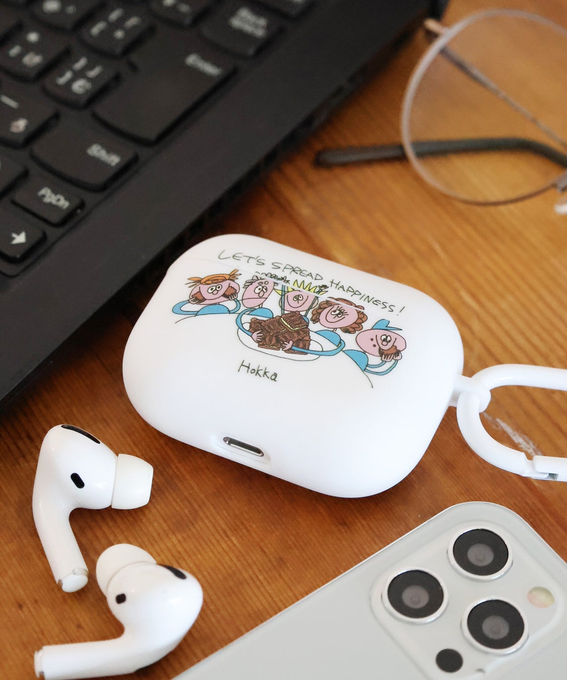 イラストレーター・オガワナツミさんのイラストがプリントされたAirPodsPROケース。カラビナ付きなのでバッグなどにも取り付けやすく、持ち運びにも〇。