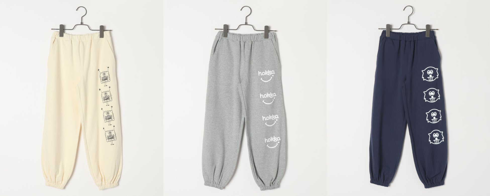 柔らかなスウェット素材が穿きやすいキッズのイージーパンツ。片脚とバックポケットにカラーによって異なるプリントと刺繍が。