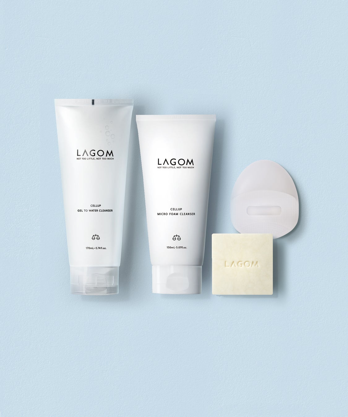 「ジェルトゥーウォータークレンザー(朝用洗顔ジェル)、「マイクロフォームクレンザー」、「PHバランス クレンジングバー」のクレンジングセット。シリコーン製のフェイシャルクレンジングブラシもついた、<ラゴム>のクレンジングアイテムをご堪能いただけるスペシャルセットです。