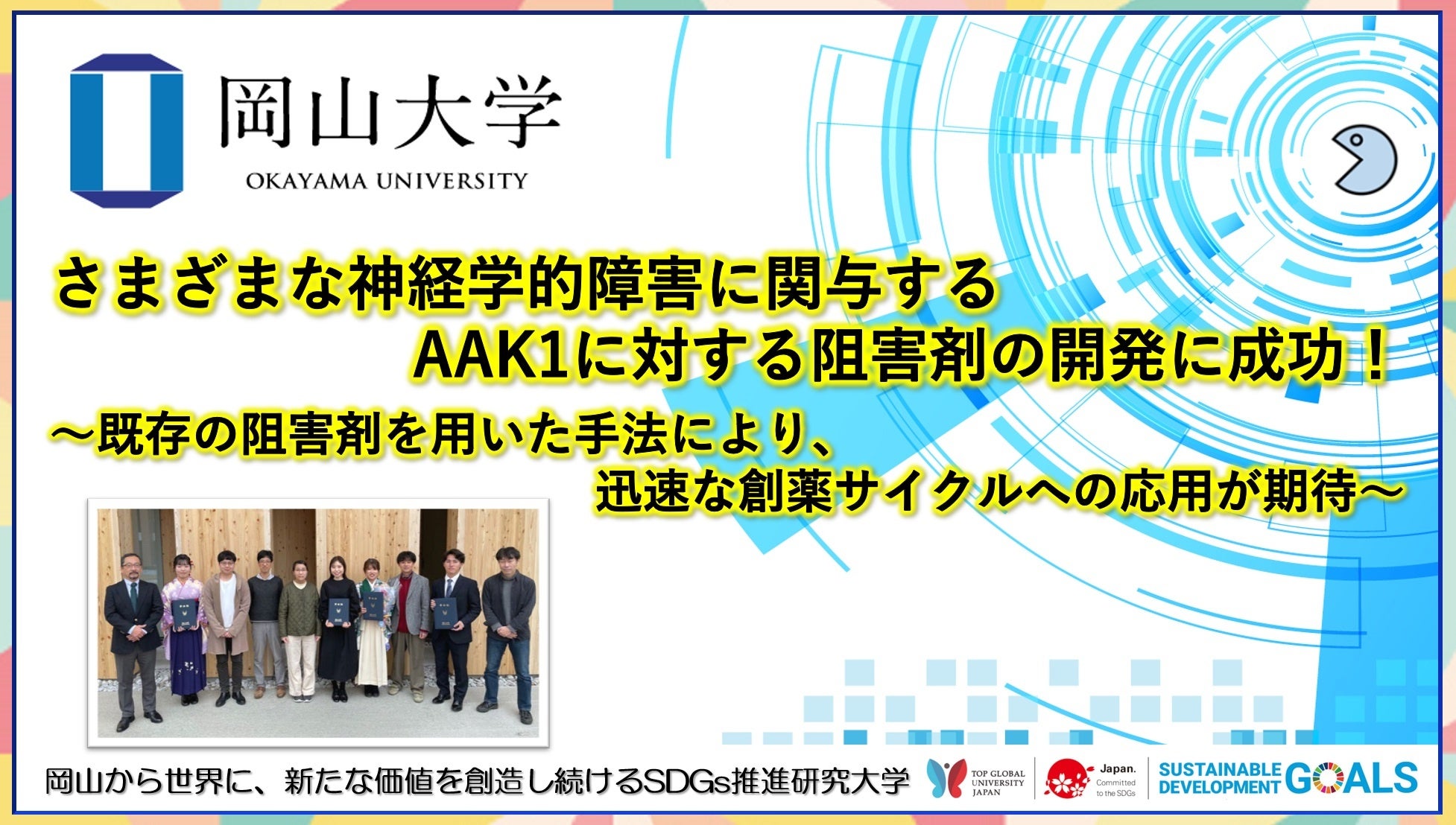 【岡山大学】さまざまな神経学的障害に関与するAAK1に対する阻害剤の開発に成功! ~既存の阻害剤を用いた手法により、迅速な創薬サイクルへの応用が期待~
