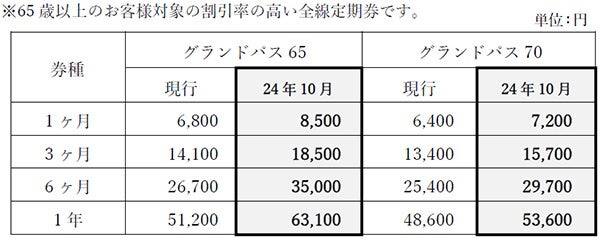 ・定期券は、2024年9月30日まで、改定前の運賃にてご購入いただけます。