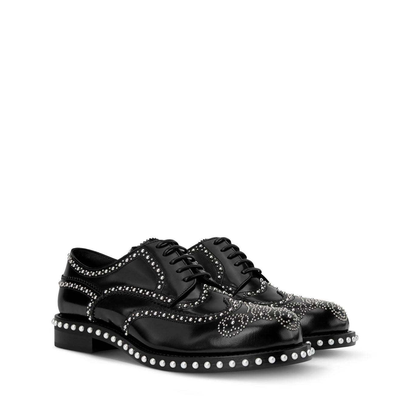 しなやかなレザーを使用し、伝統的なブローグシューズのパーフォレーションを想起させるパールとスタッズで華やかに彩られた「LVオックスフォード ダービー」。装飾的なモノグラム·フラワー パターンをトウキャップにさりげなくあしらいました。レザー&ラバーアウトソールで仕上げた、シューズ·コレクションの定番「LV オックスフォード」ラインからの1足。