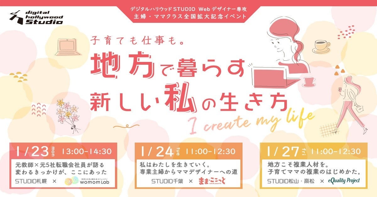 「Webデザイナー専攻 主婦・ママクラス」全国拡大開講記念トークイベントを札幌・千葉・松山・高松にて開催!|デジタルハリウッドSTUDIO