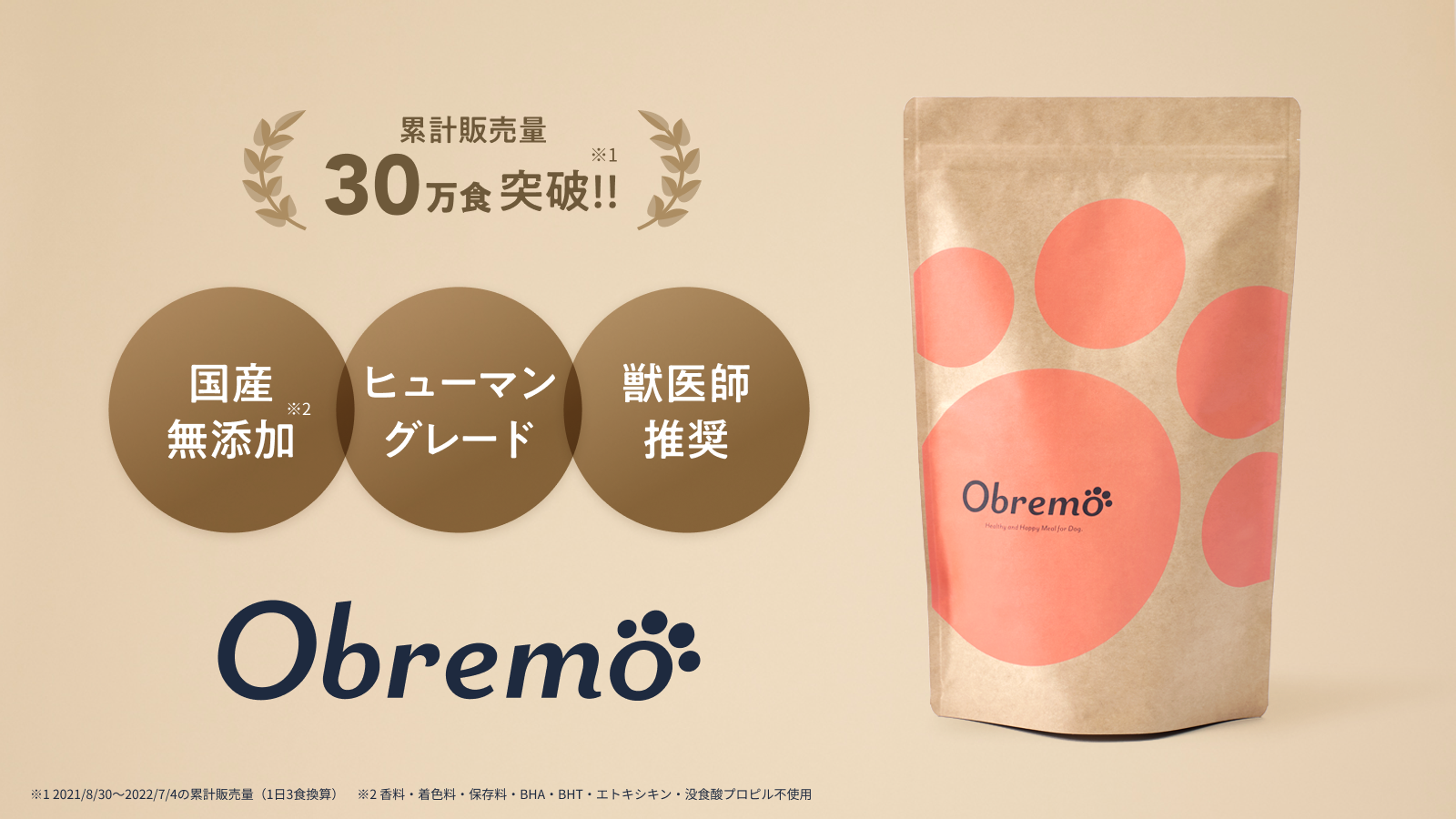 2021年8月に販売を開始した「Obremo」は、「家族の絆が深まる、健やかで楽しい日々を」をコンセプトに誕生したドックフードブランドです。大切な家族にできる限りの愛情を注ぎたいすべての飼い主の願いを実現するための商品や情報をお届けし、全国の飼い主、ワンちゃんにご愛用いただいています。