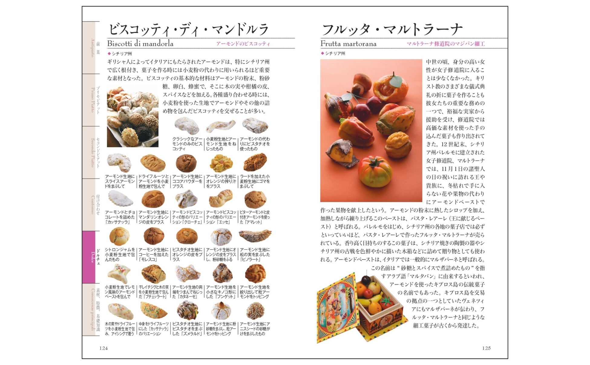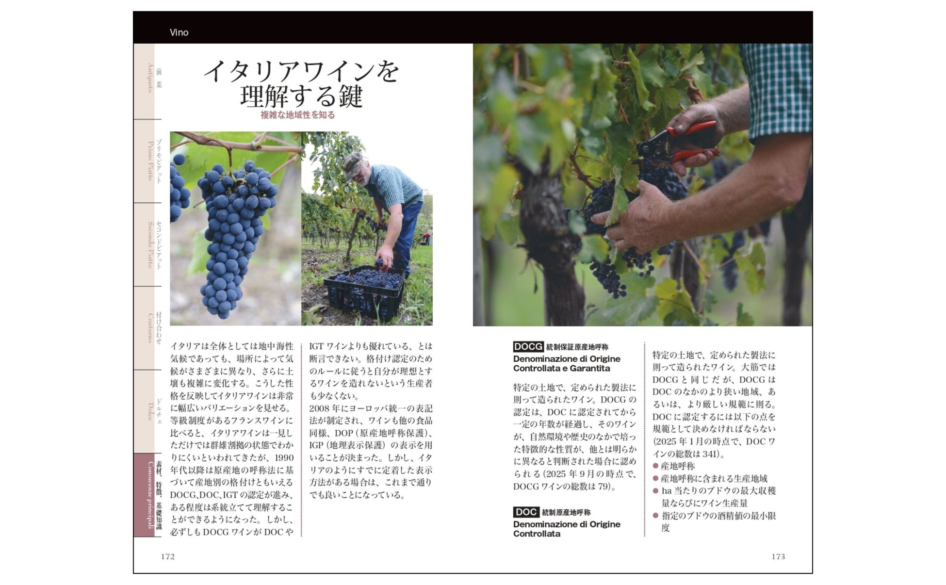 第2部はイタリア料理の素材・特徴などの「基礎知識」。食材はジャンルごとに詳細を極め、パスタや加工肉、チーズなどは個別の写真入り、またオリーブオイルの多様性、原産地別ワインなどにもページを割き、イタリア原産食材のDOP、ならびにワインのDOCG、DOC、IGTも紹介します。