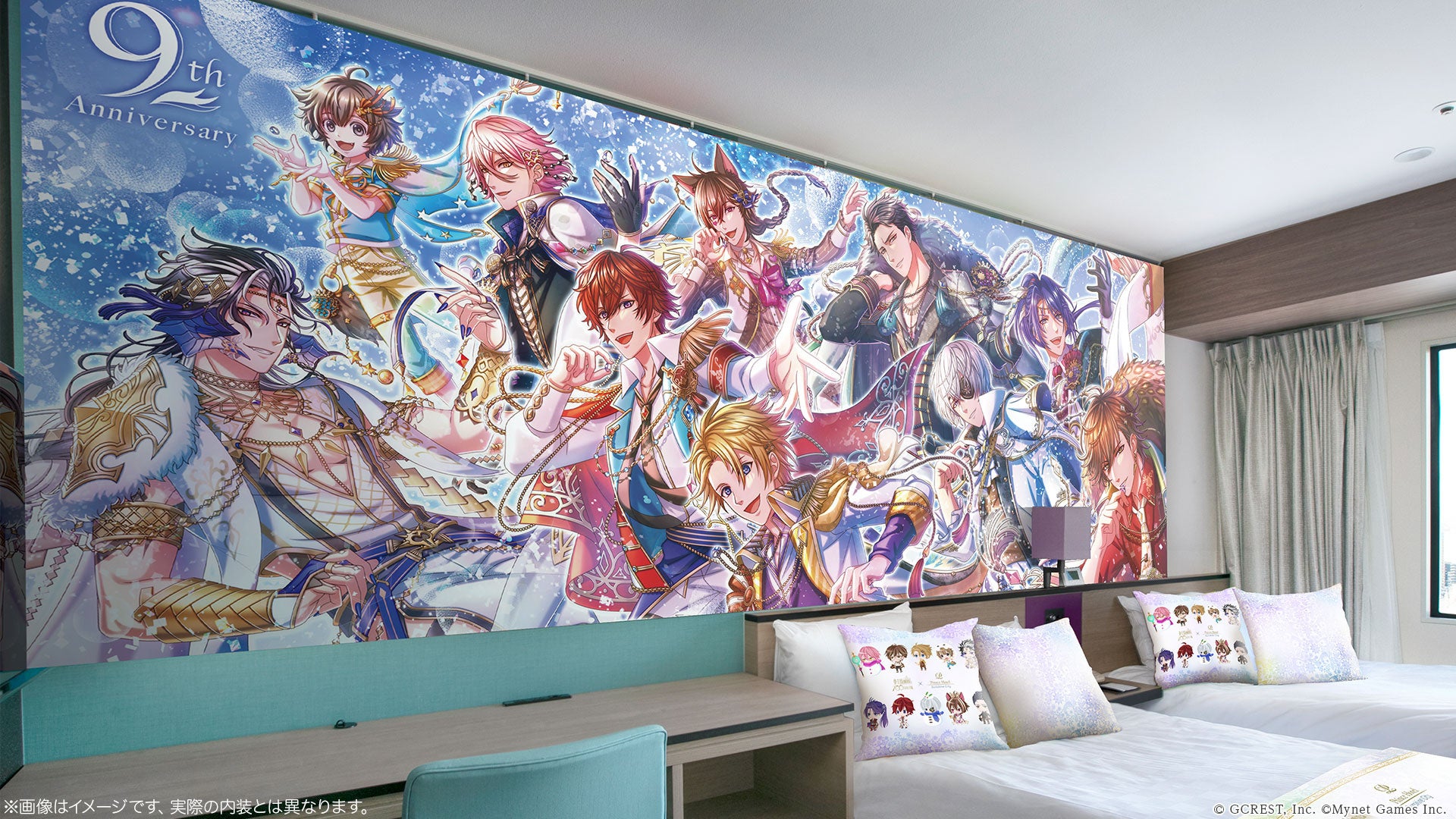『夢100プリンセスルーム』ステイプランでは9周年キービジュアルに登場する10人の王子様がみなさまをお出迎えし、王子様に見守られているようなドキドキ気分が味わえるお部屋をご用意いたしました。