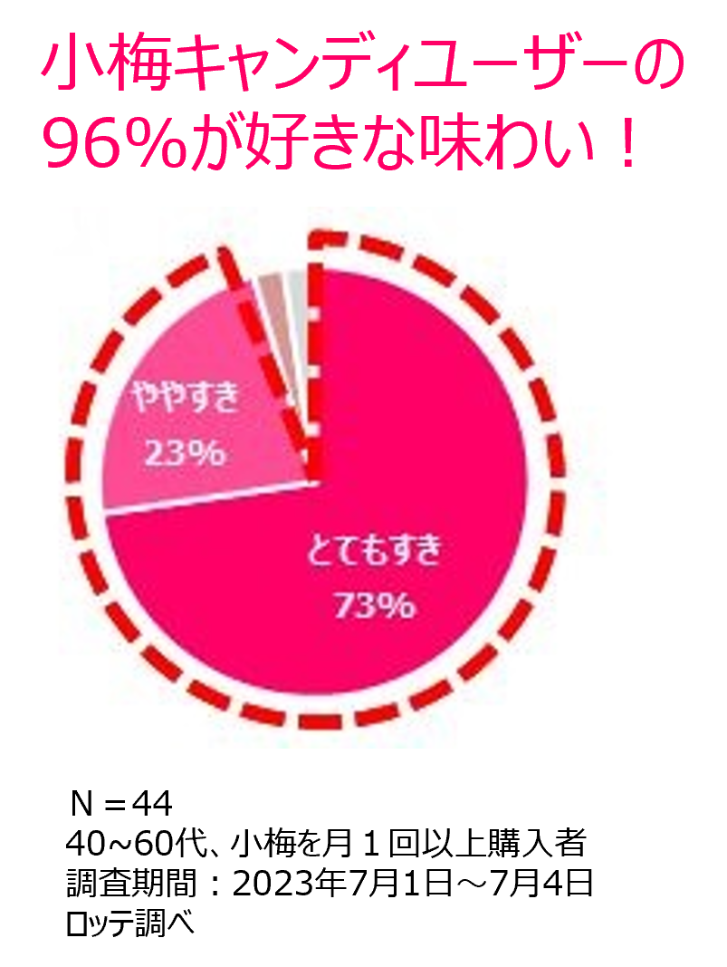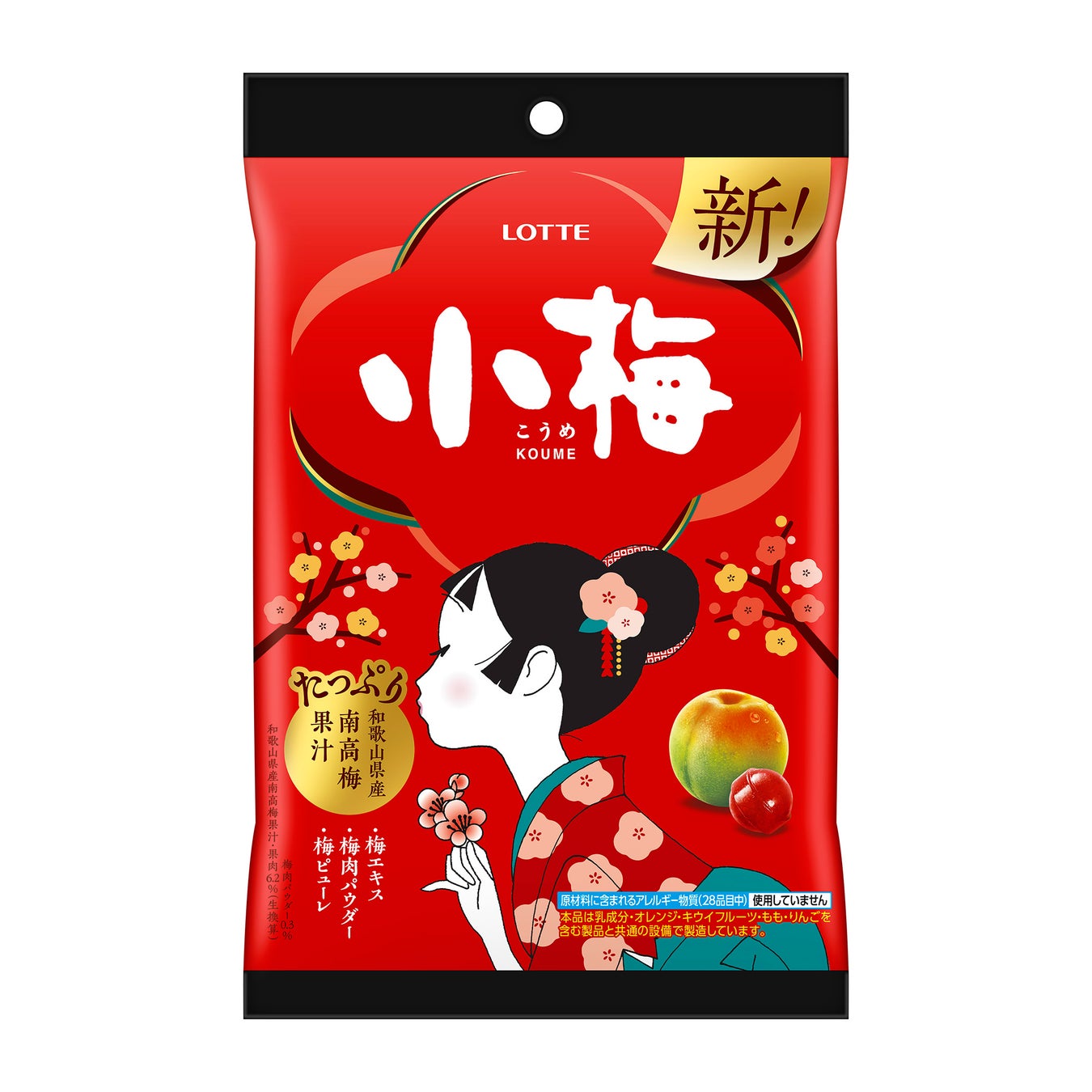 担当者より商品への思い 小梅はおかげさまで、今年発売50周年を迎えることができ、大変うれしく思っております。小梅ちゃんのキャラクターとともに親しまれてきた小梅ですが、その歴史はロッテの梅素材へのこだわりの歴史でもあります。50周年を機に改めて「梅へのこだわりとおいしさをより多くのお客様に知ってもらいたい」そんな思いで何度も試作を繰り返し、今回のリニューアルに至りました。「もっと梅の味わいを楽しめたらいいな」などのお客様の様々なご意見に向き合い、5年かけて品質を見直しました。今回単層構造にしたことで、ハードキャンディ部分が増え、和歌山県産南高梅果汁(*1)を2倍(*2)配合し、梅エキスの他、梅肉パウダー(*3)、梅ピューレを新たに配合することができました。それにより、梅の爽やかな香り、梅の果肉由来のフルーティな味わいをお楽しみいただけます。ロッテの調査で小梅キャンディユーザーに新しい小梅を食べていただき、96%の方が好きな味と回答しました。生まれ変わった小梅をぜひお試しください。 (*1)和歌山県産南高梅果汁6%(生果汁換算) (*2)従来品比 (*3)梅肉パウダー0.3% |