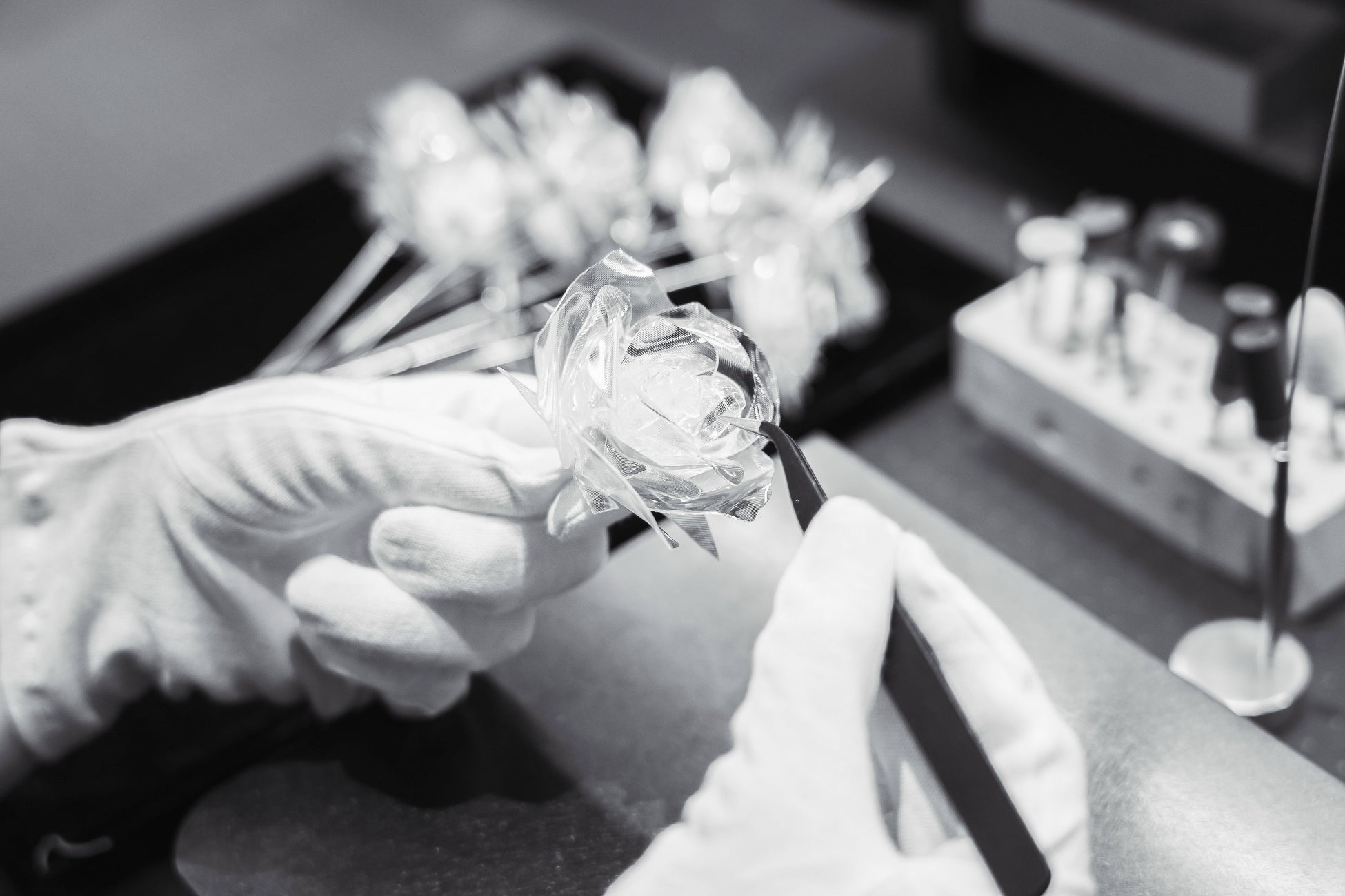 自然美や現象を結晶化したようなインテリアアートやジュエリー、大規模なインスタレーションやシャンデリアなど、独自のノウハウと特許技術を用いながら、スペシャリストが東京・銀座で一点一点制作しています。