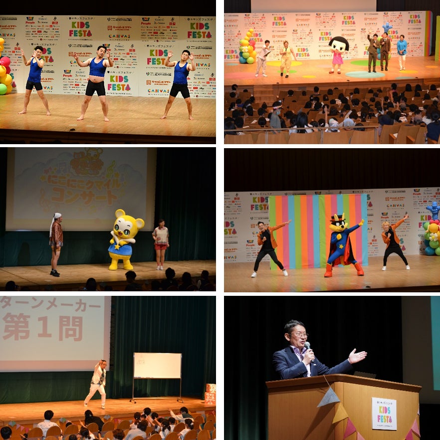 2日間にわたって、国立オリンピック記念青少年総合センターカルチャー棟の大ホール、小ホールを会場に「親子で楽しめるネタ」をテーマに人気芸人が大集合した「お笑いファミリー劇場」、NHK「チコちゃんに叱られる!」のチコちゃんが登場する「チコちゃんと学ぶSDGs」、おやこでできタッチ「しまじろうのハッピーステージ」、大人気のキッズ向けYouTubeチャンネル「クマーバチャンネル」からクマーバのお笑い芸人のバンビーノとコラボするクマーバチャンネル「にこにこクマイルコンサート」のライブショーと、花まる学習会・高濱正伸講演会「親子で伸ばせる思考力」、教育家・小川大介講演会「親子が共に満足できるゲーム・You Tube・SNSとの「かしこい」付き合い方」、「放送大学石丸先生と一緒に「いのち」の裏側を探ってみましょう」の専門家による講演会などを実施しました。