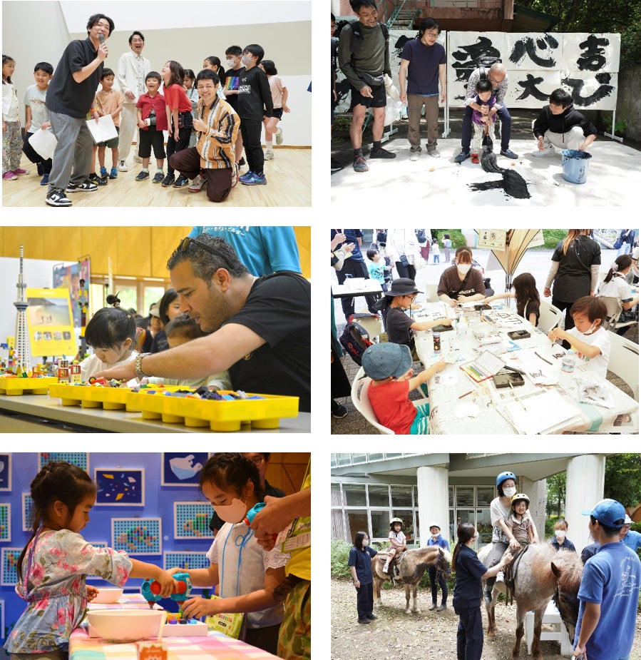国立青少年教育振興機構が培ってきた様々な自然体験ワークショップと、世界最大級のこども創作イベント「ワークショップコレクション」のバラエティー豊かなワークショップをご用意し、コミュニケーション(対話)、造形、絵画・イラスト、国際・海外、サイエンス、電子工作、映像・音楽、スポーツ・身体表現、ゲーム・クイズ、環境・自然、STEAM、SDGs、デジタル、お笑い・エンタメ、食育、の計15個のカテゴリにわたって100を超えるワークショップを実施しました。