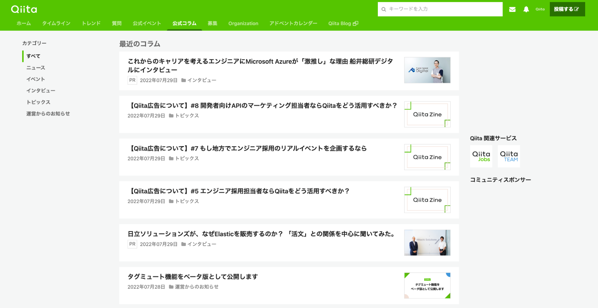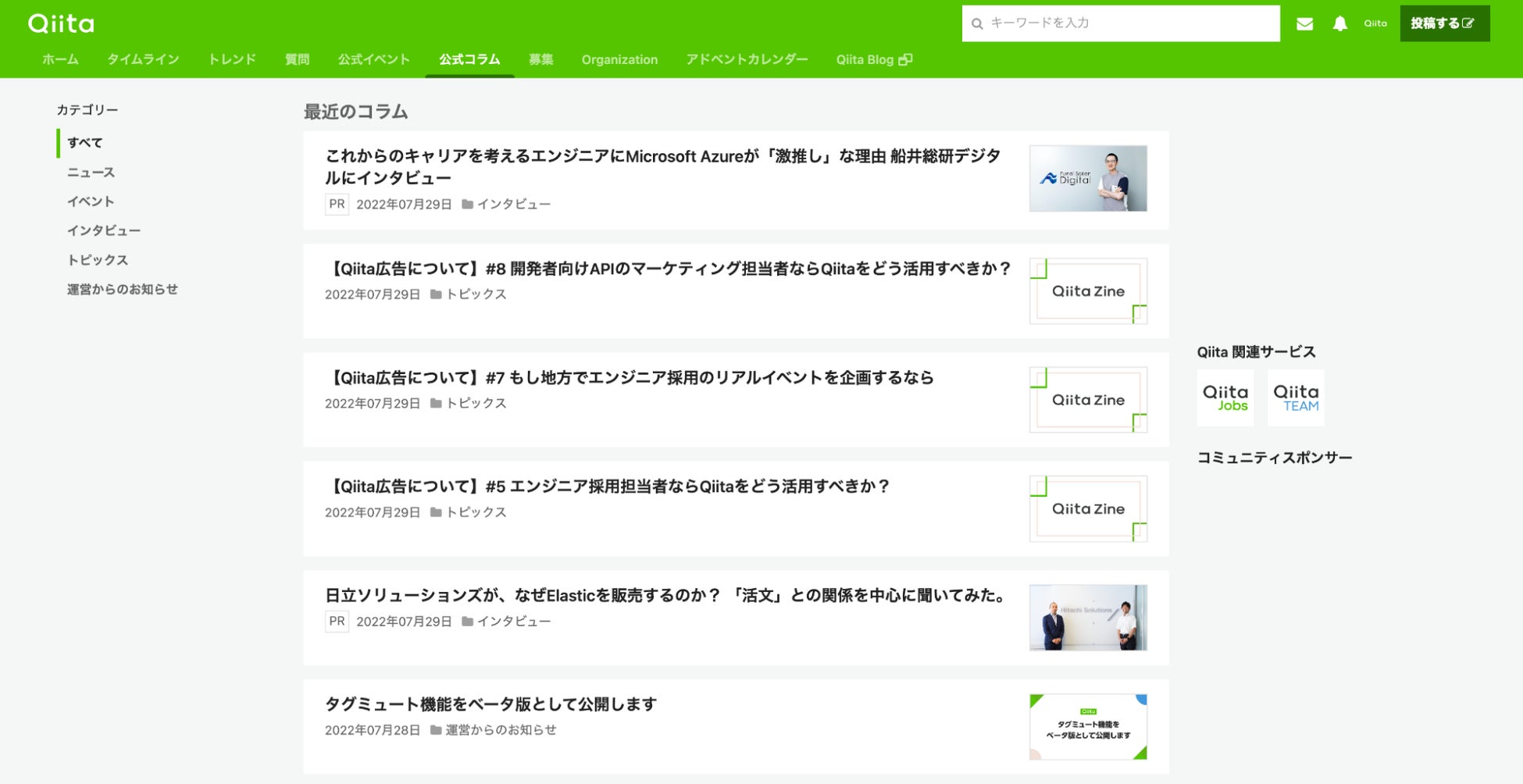 ・公式コラムページ(https://qiita.com/official-columns)