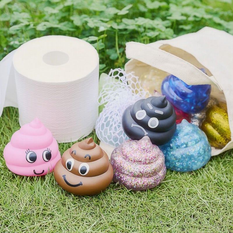 本商品は、“ぷにゅっ”とモチモチした触り心地で、引っ張ったり伸ばしたりしながら触って楽しく遊べるうんち型のおもちゃです。デザインは顔付き・ラメ入りなど全部で12種類。ぷにゅっと飛び出したり、たたくと暗闇で光ったりするレアうんちもあり、何が出るかは開けてからのお楽しみです。