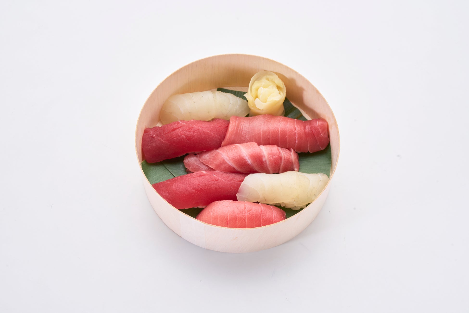 天然本鮪の赤身、中トロ、大トロ、真鯛のにぎりが入った、春爛漫、お花見のお供にぜひ!!