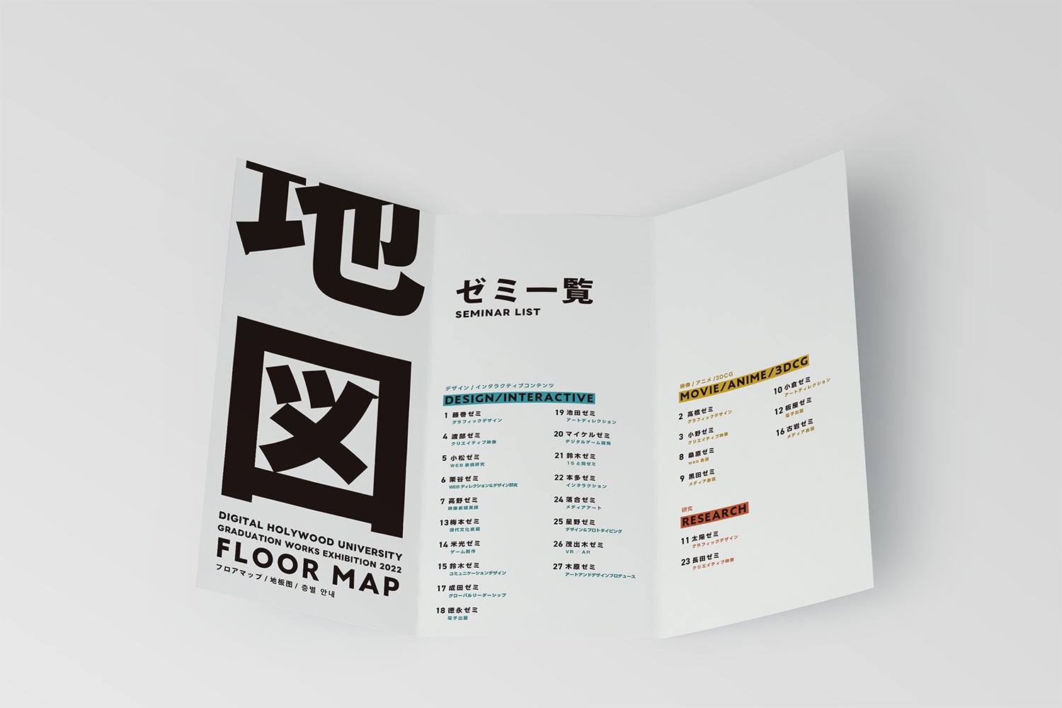 2022年度の卒業制作展公式サイトやポスター等のデザインは、デジタルハリウッド大学4年生の小林あげはさん、当日の館内マップは3年生の髙山 友暉さんによって制作されました。