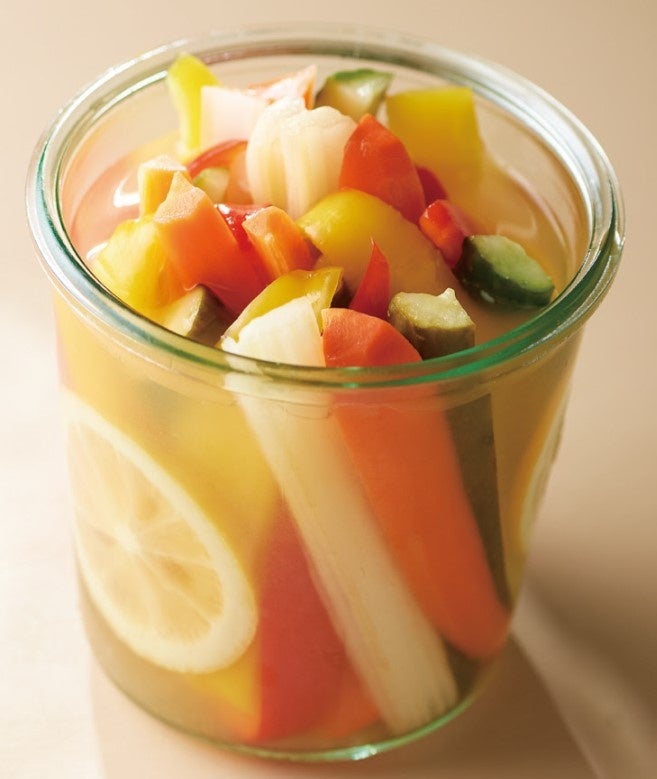 レモンを輪切りやみじん切りにして漬けると早く熟成する。
