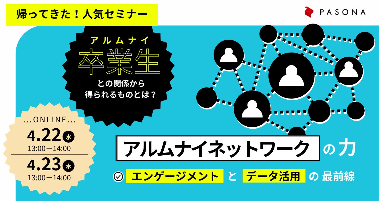 株式会社パソナは、採用・人材育成に関わる経営層・ご担当者様を対象に、「アルムナイネットワークの力~エンゲージメントとデータ活用の最前線~」を、昨年に続き4月22日(水)、23日(木)に開催いたします。