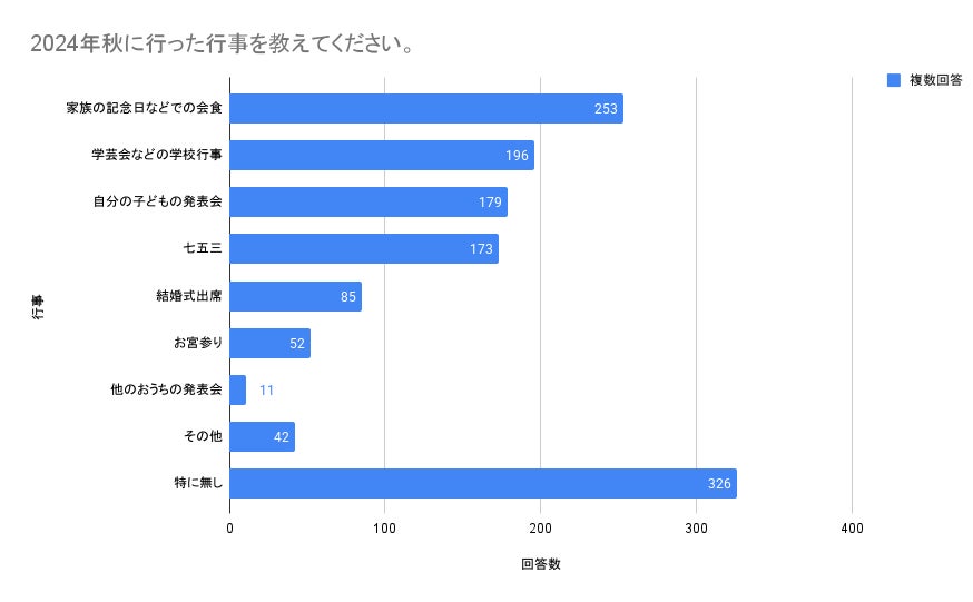 調査では、66%の母親が秋に何らかのセレモニーに参加していることが判明しました。卒入園シーズンである春に次いで、七五三・発表会・家族の記念日など…秋にも数多くの"ハレの日"が存在することが明らかになりました。
