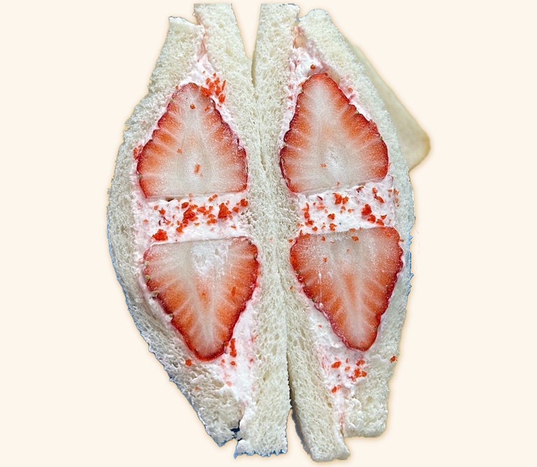 とちあいかジャムと生クリームを合わせたいちごのサンドイッチ。いちごの顆粒がアクセントです。