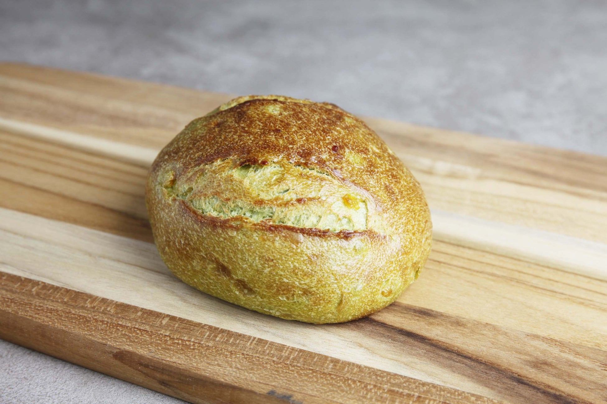 食パンの生地に抹茶と柚子のスライスピールを練り込んだ季節限定のパンです。