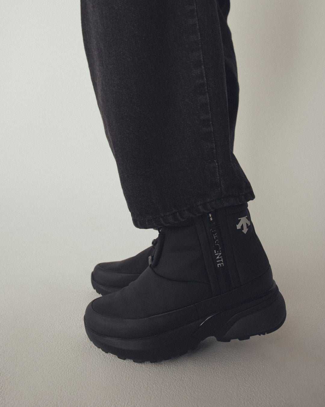 冬の定番であるDESCENTEのショートブーツ。今季はマットなレザー調のモデルを別注。