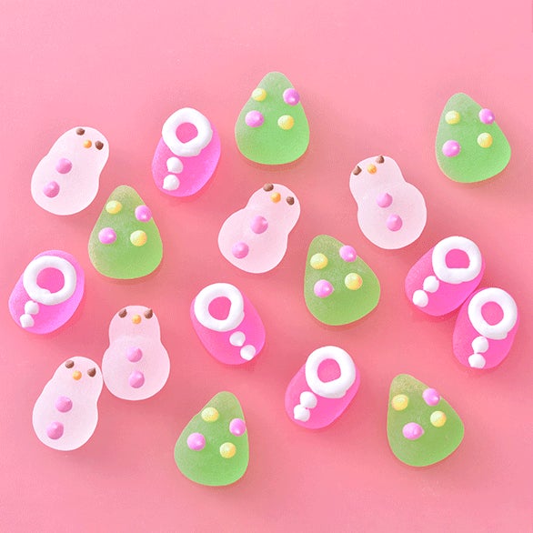 ジングルベルクリスマスを彩るツリーやブーツ、雪だるまなどのモチーフを、愛らしい糖蜜ボンボンで創作。