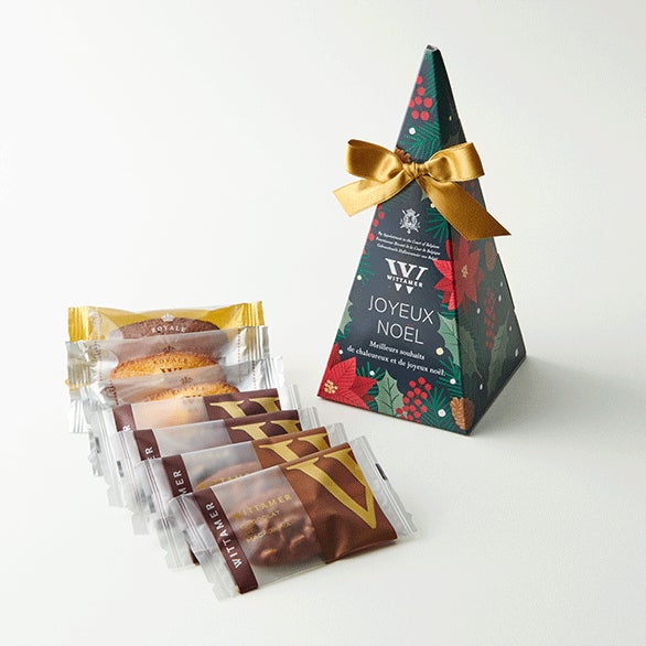 ヴィタメール人気の焼き菓子「マカダミア・ショコラ」と「ロイヤル・マドレーヌ」をツリー型のパッケージに詰め合わせました。